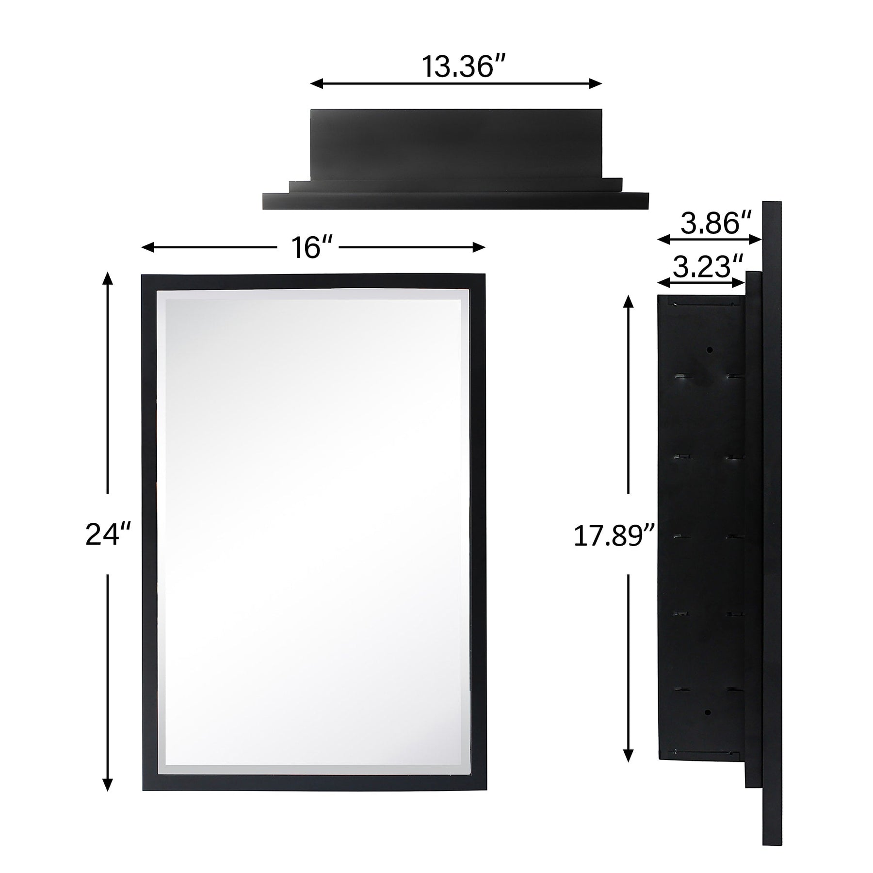 TEHOME 16-in x 24-in Recessed Mount Matt Black Mirrored Medicine Cabinet