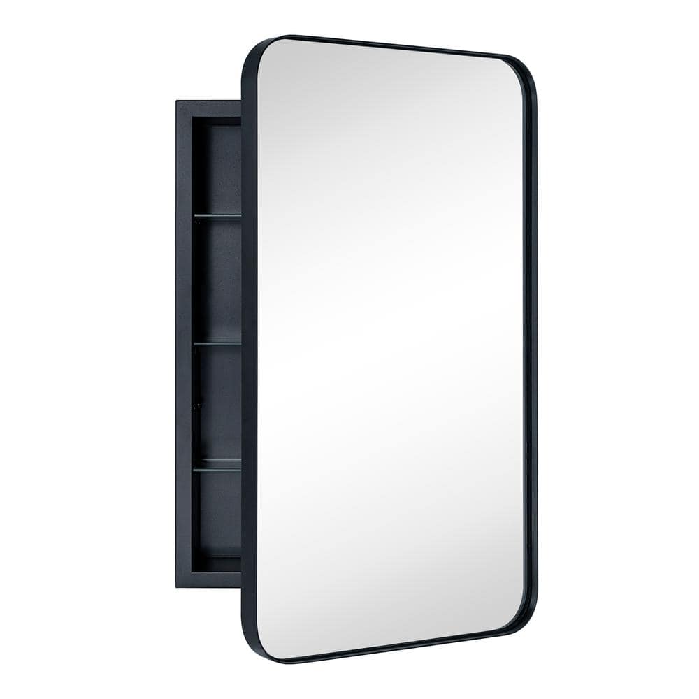 Discover the TEHOME Recessed Medicine Cabinet in a sleek matt black finish that effortlessly elevates any bathroom aesthetic. This piece's standout feature is its gleaming metal framed mirror, which artfully reflects light to create a spacious ambiance. Style it with minimalistic accessories, or let it shine as a standalone statement, blending modern design with functional appeal. Make this cabinet an essential element of luxurious living, where style meets practicality.