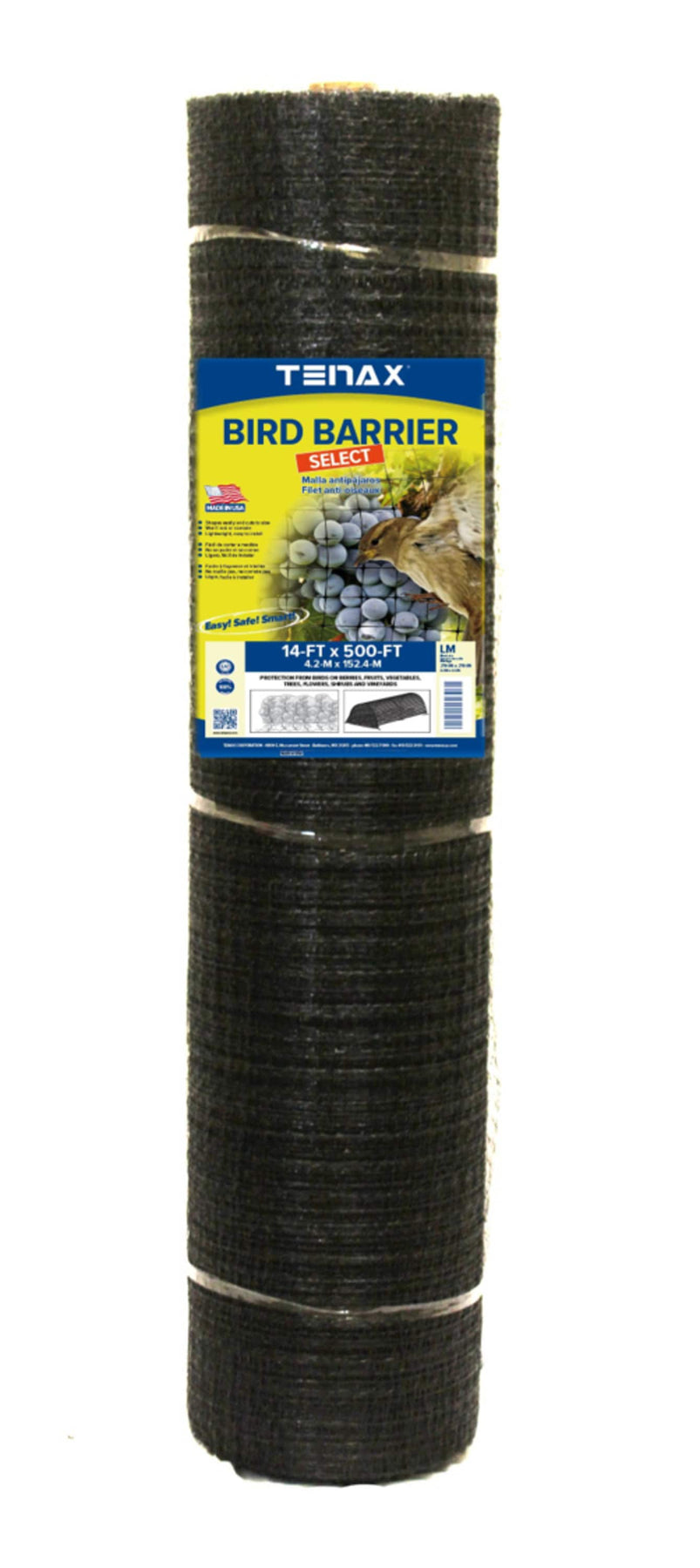 Secure your gardens and valuable crops with Tenax's economically designed Ornex LM 500-Feet x 14-Feet Black Plastic Bird Netting. This UV-treated, non-toxic mesh is gentle yet effective, deterring birds while protecting your produce from interference and damage.