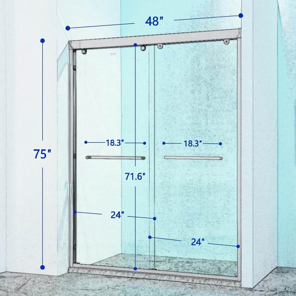 Q: How do I adjust the width of the shower door? A: You can adjust the width of the shower door by cutting the frame to fit within 44 to 48 inches. It's also designed to support wall tilt installation within 1/2 inch.