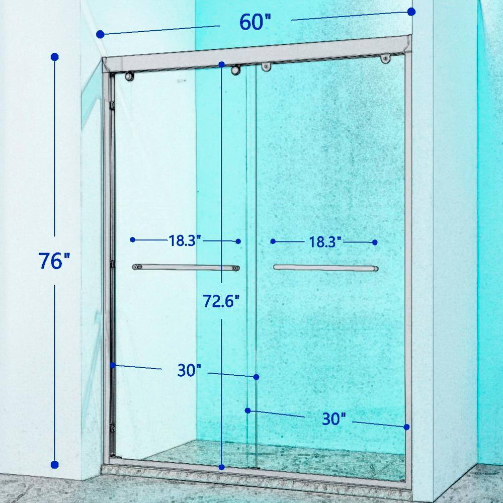 Q: How do I adjust the door width? A: To adjust the width of the shower door, simply cut the aluminum frame to fit your desired dimensions between 56 and 60 inches. Detailed instructions are included in the installation guide.