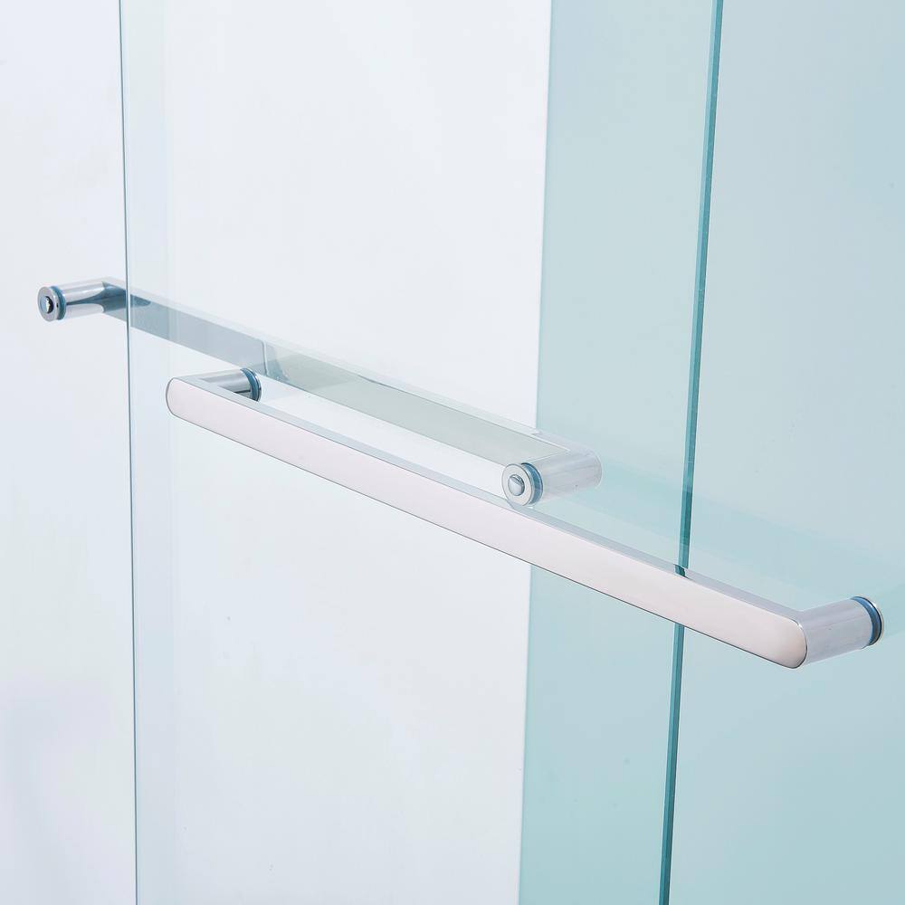 Q: How do I clean and maintain the door? A: The shower door features a smooth tempered glass surface that can be easily cleaned with standard glass cleaners. Regular maintenance will keep it looking clean and clear.