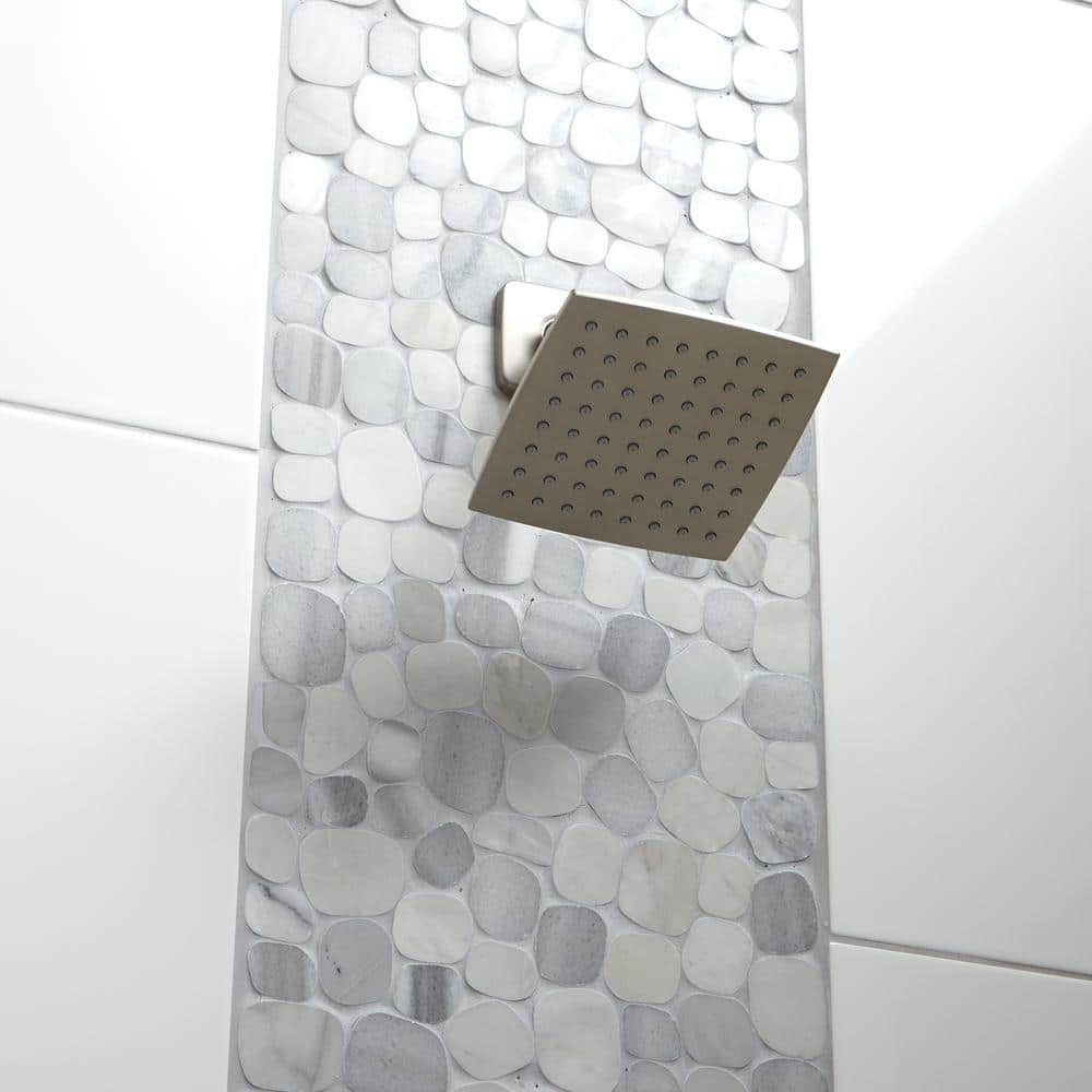 Softly rounded marble pebbles ripple across the surface, casting a tranquil, spa-like mood. The Shadow palette—whispers of gray and white—adds understated luxury and texture. Frame a shower niche, run a vertical accent, or ground a vanity wall to conjure calm sophistication. This mosaic is an effortless route to a layered, luminous interior that feels impeccably refined.