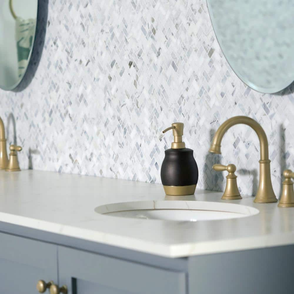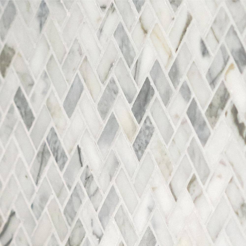 This mosaic distills the serenity of fog into a chic herringbone cadence, shimmering softly across walls and vanity backsplashes. The petite marble chips create nuanced movement, lending depth without overwhelming the room. Pair it with satin brass fixtures and crisp white field tile for a layered, modern-classic statement. It’s a refined essential that instantly elevates everyday rituals to luxury.