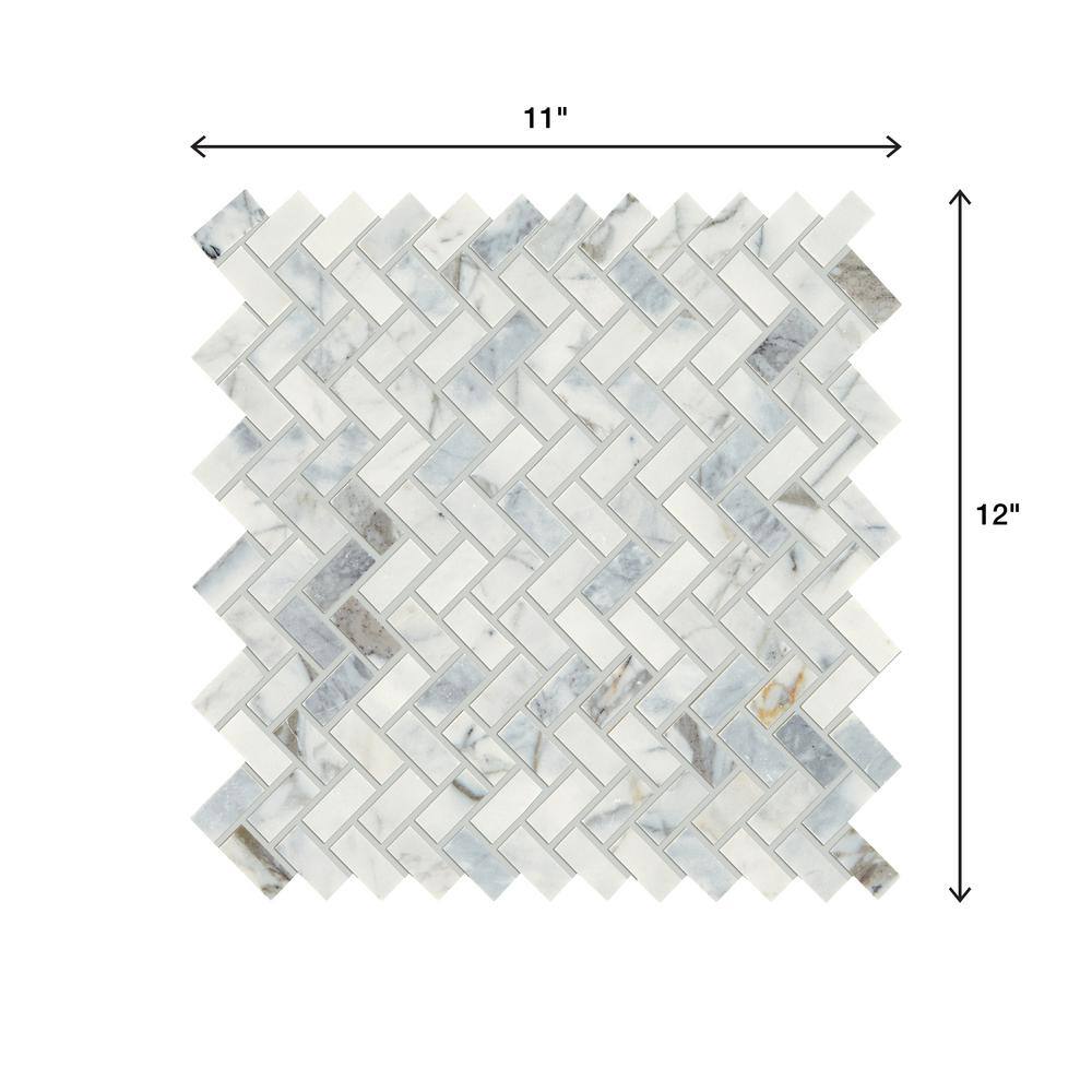 Stone Decor Fog Marble Herringbone Mosaic Tile, 11x12 in.