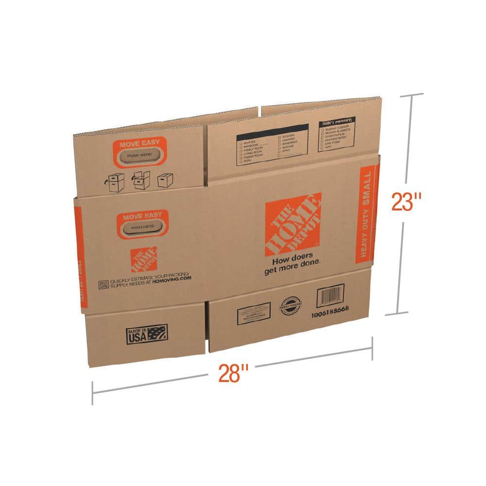 Enhance your moving and storage experience with The Home Depot's Heavy-Duty Small Moving Boxes. Featuring a robust double-thick corrugated construction, these boxes ensure your heavy, valuable, or fragile items are safely transported or stored. Eco-friendly and designed with convenient side handles, they are perfect for both short trips and long-term storage.