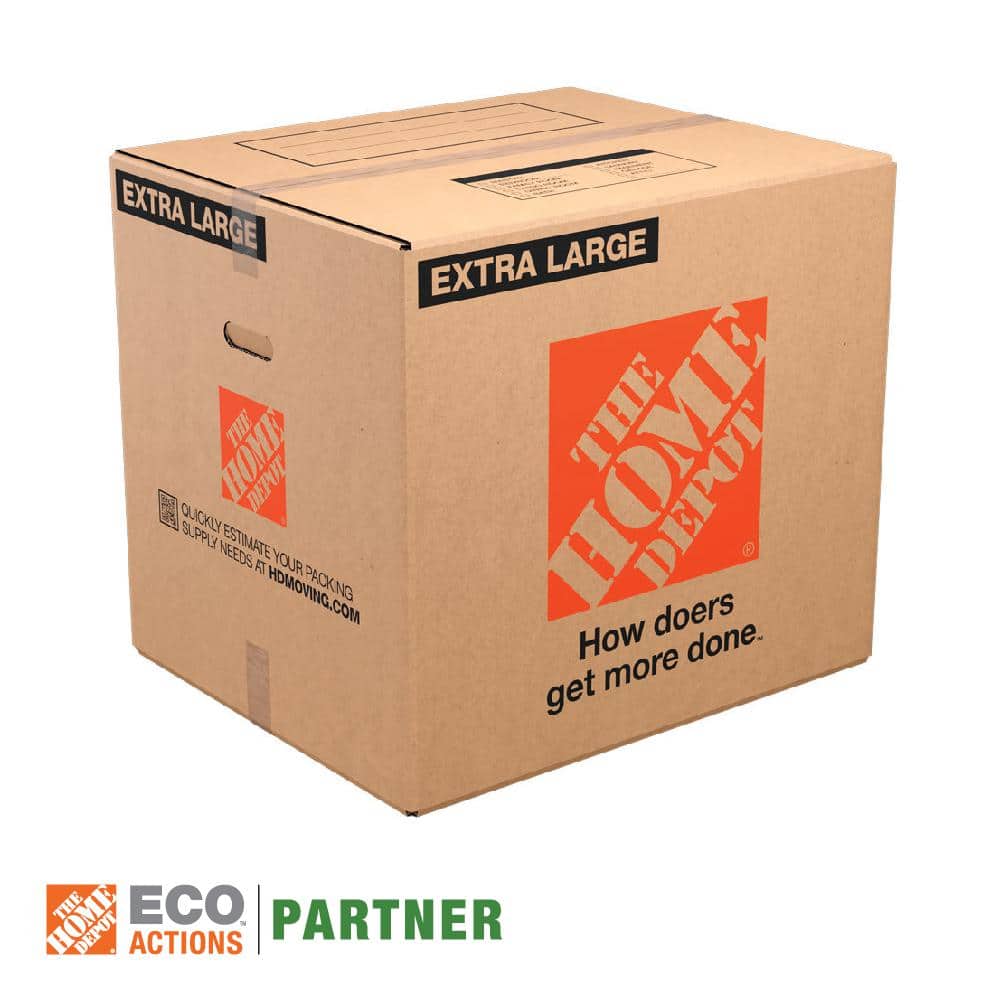 Streamline your moving or storage process with The Home Depot Extra-Large Moving Boxes. Crafted from 100% recycled material, these boxes are both eco-friendly and robust, designed to handle up to 65 lbs of lightweight, bulky items with ease.