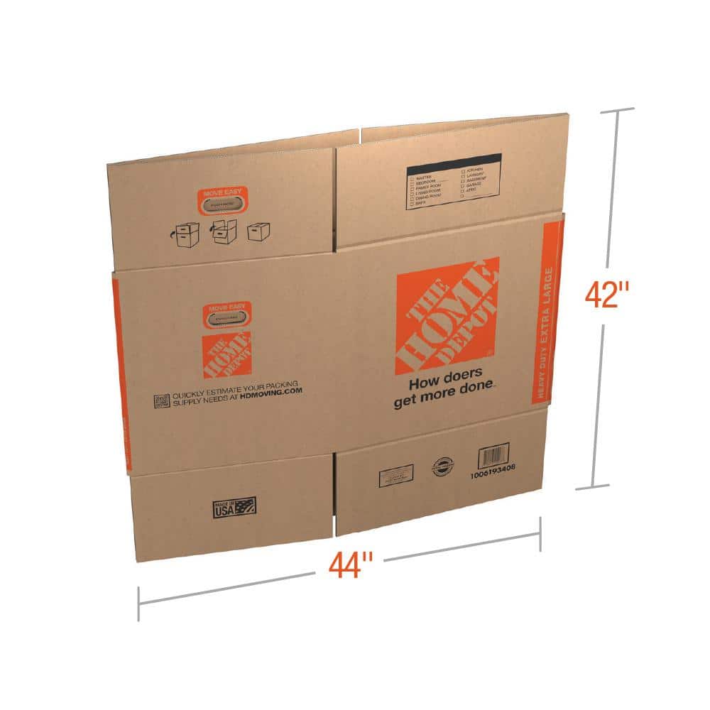 The Home Depot's Heavy-Duty Extra-Large Moving Boxes offer unparalleled strength for your most demanding packing needs. With double wall construction that holds up to 75 lbs, these boxes are perfect for moving and storing valuable, heavy, or fragile items, crafted from 100% recycled material for eco-friendly assurance.