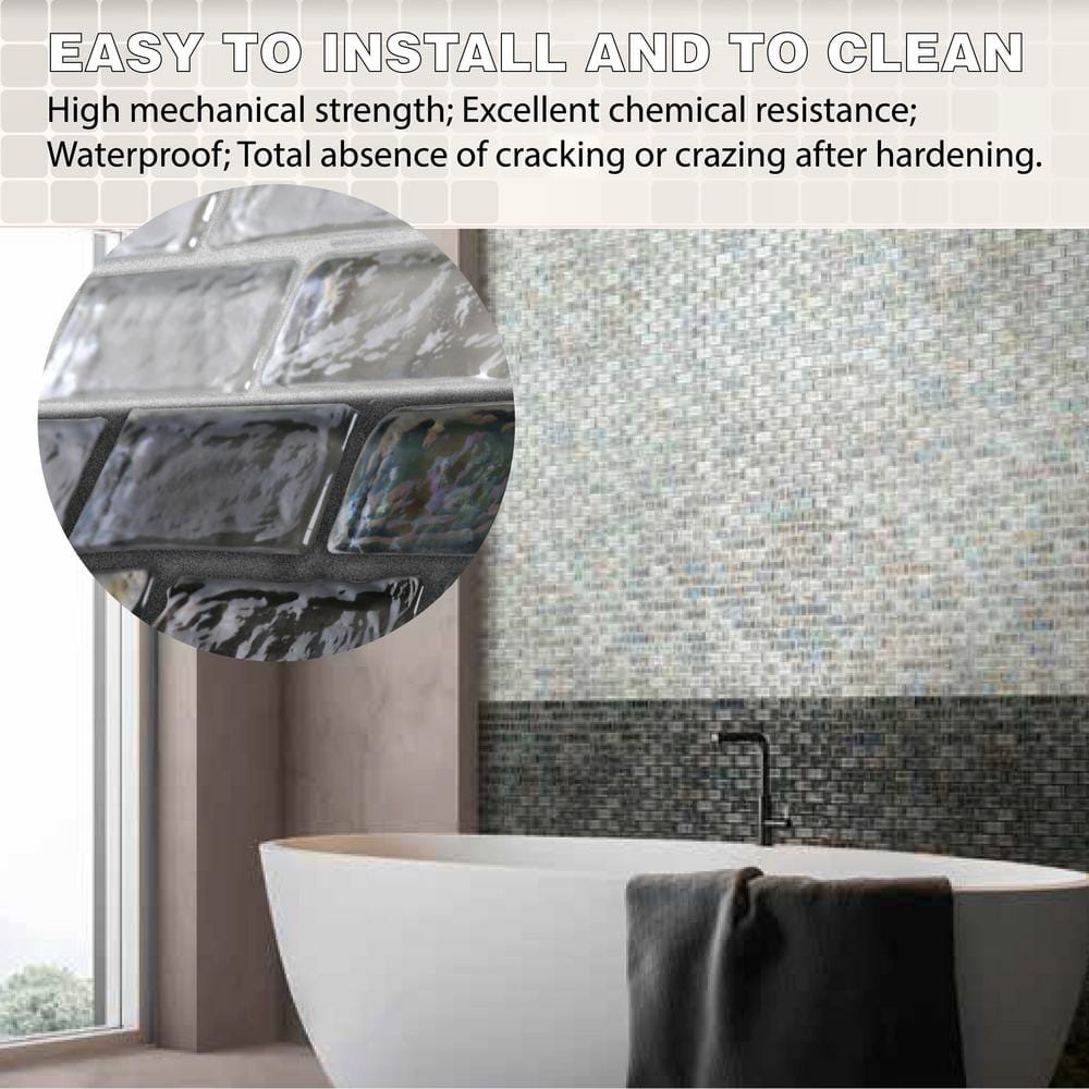 Translucent Grout: Enhances glass and mosaic tile aesthetics by absorbing tile color.
