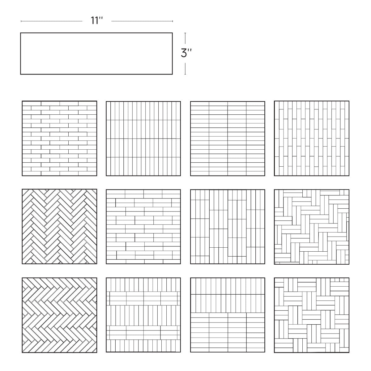 Available Sizes 3x11", 4x4", 4x12", 4x36"