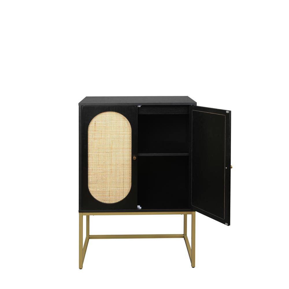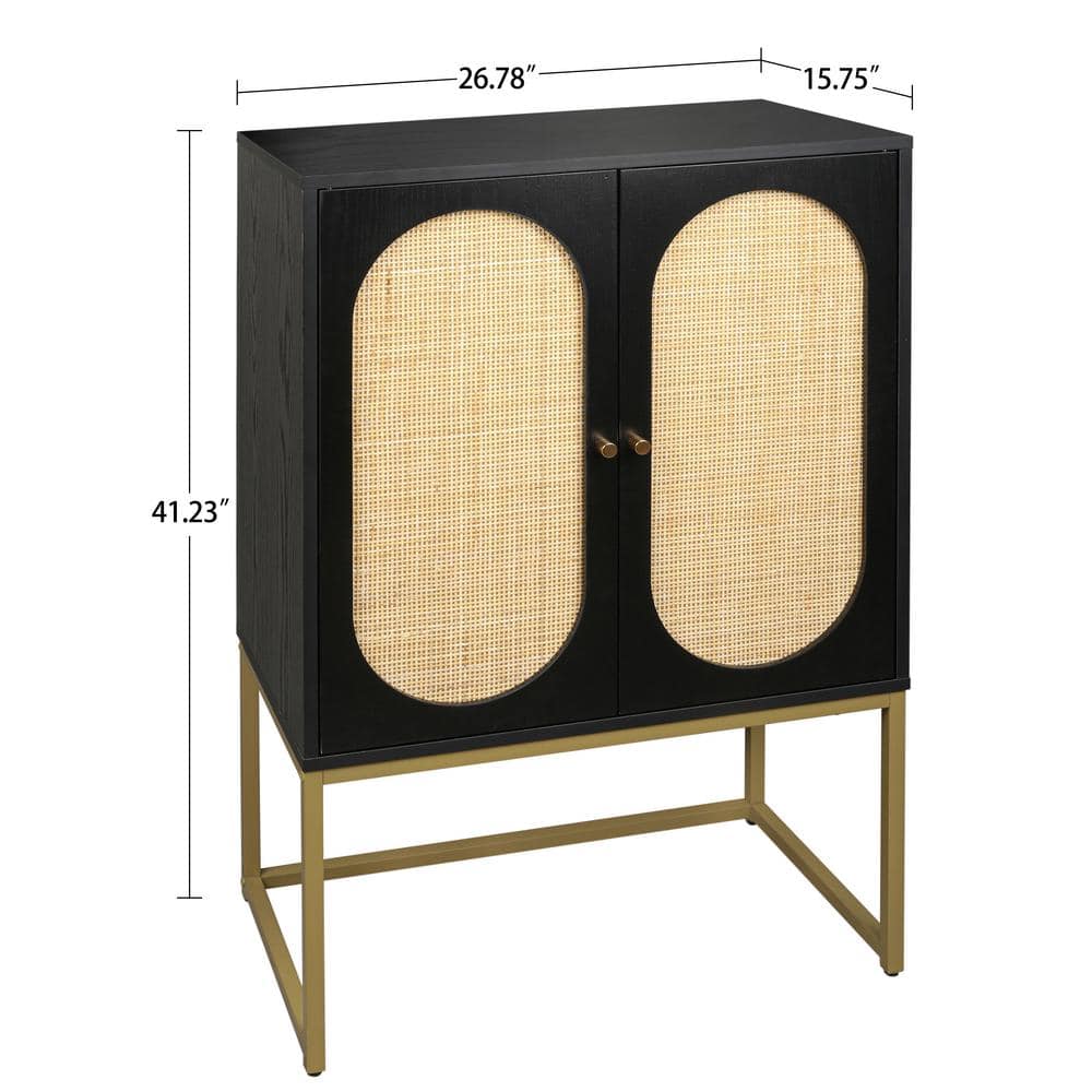 Imagine the allure of natural rattan meeting the sleek sophistication of black wood. This freestanding kitchen cabinet serves as more than just storage; it’s a statement piece that transforms your space. The oval rattan detailing on the doors draws the eye and exudes a warm, bohemian vibe. Picture this in your dining room, adorned with colorful dishware or in the living room showcasing vintage books and accents. Its versatility and stylish design make it an essential purchase for those who crave elegance and functionality.