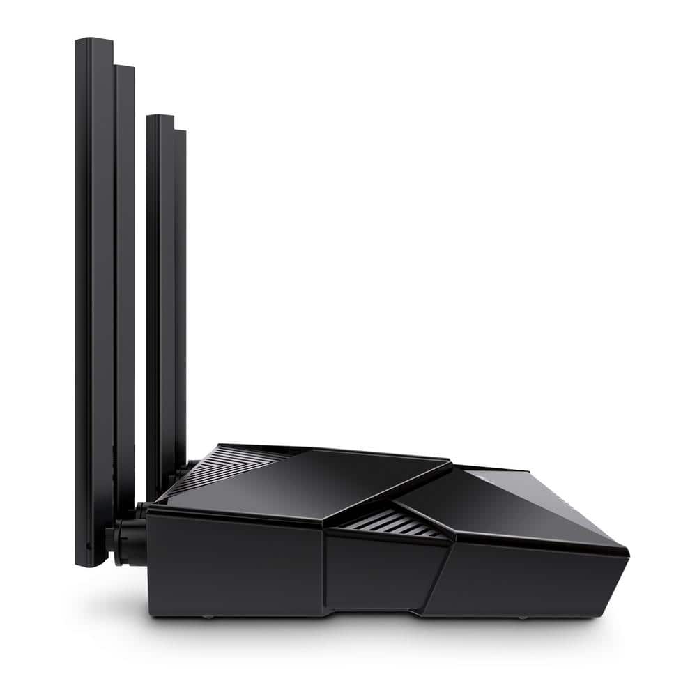 The TP-LINK Archer AX1800 is more than just a router—it's a cornerstone of modern living. Encased in a sleek black design, it seamlessly blends into any decor while delivering powerful Wi-Fi throughout the home. Its four antennas not only enhance functionality but add a futuristic touch. Place it centrally in your living space to maintain both aesthetic harmony and top-tier performance. Elevate your everyday with connectivity that's as stylish as it is efficient.