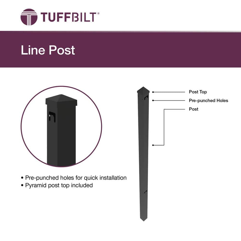 Upgrade your outdoor space with the TuffBilt Dillon Black Aluminum Fence Line Post. Made from durable powder-coated aluminum, this line post resists rust and corrosion, ensuring a long-lasting, sleek finish. Ideal for projects demanding a professional touch without the hassle of visible screws, these posts come with an easy-to-install post top and are backed by a limited lifetime warranty.