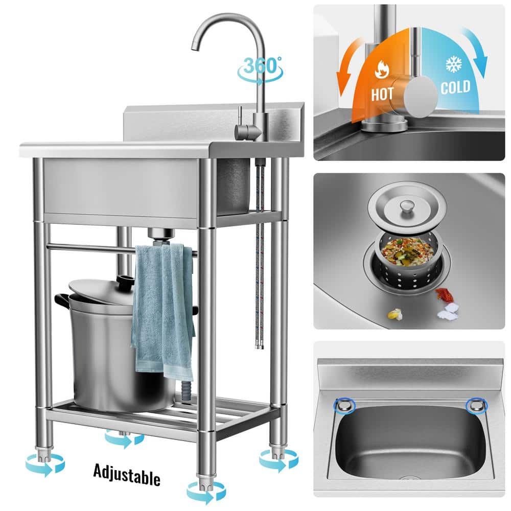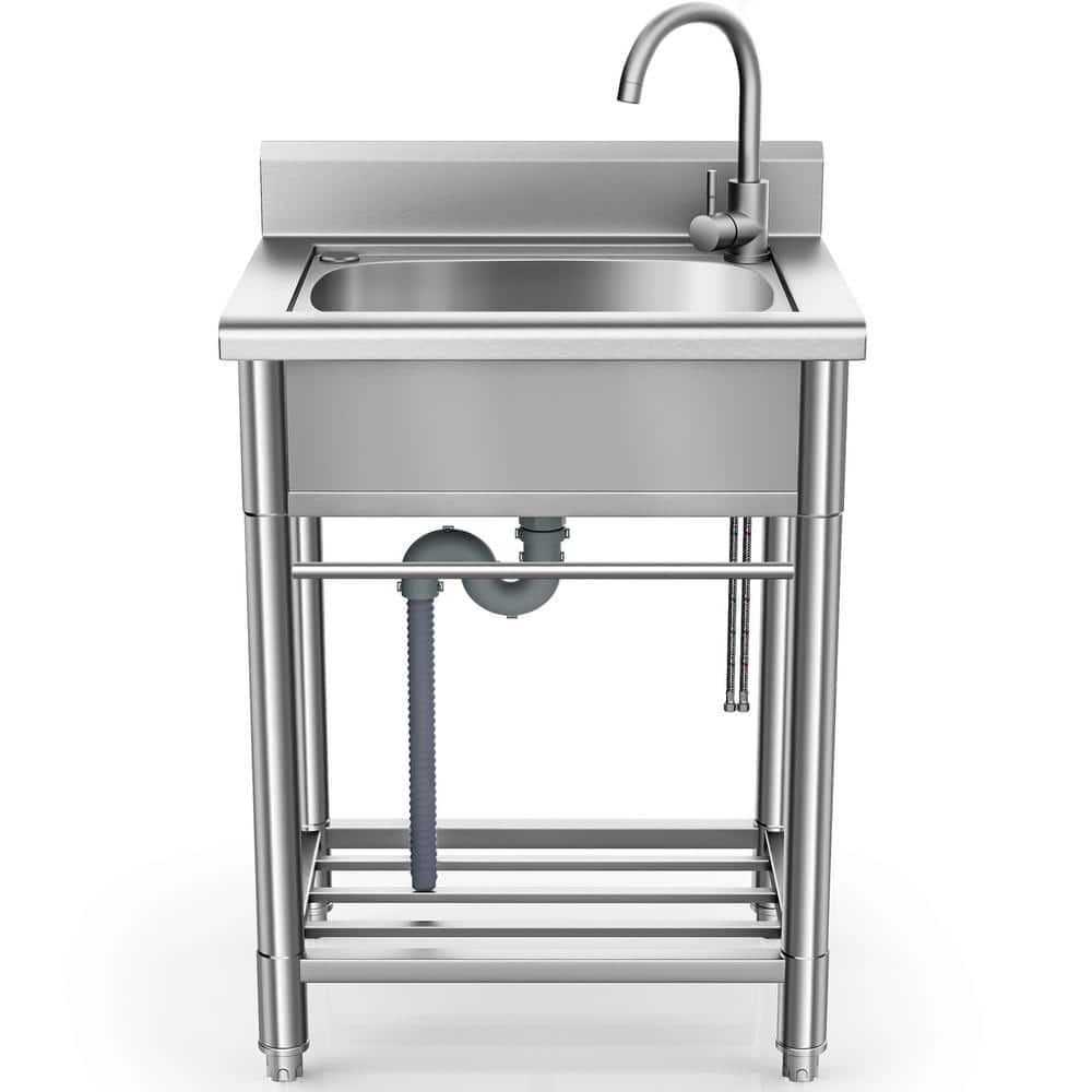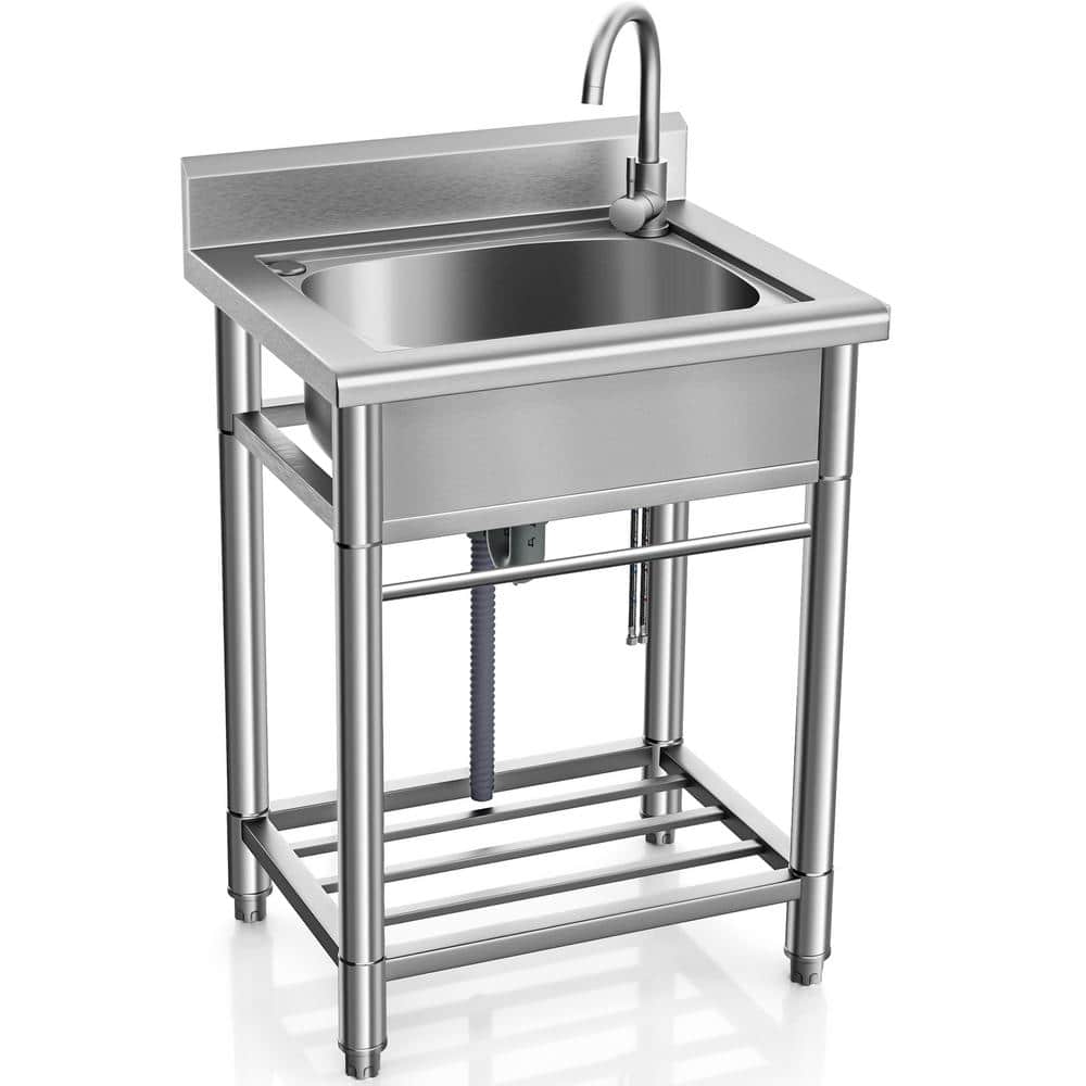 Elevate your workspace with the UKISHIRO Stainless Steel Freestanding Utility Sink. Built with food-grade 304 stainless steel, this freestanding sink is both durable and rust-proof. The 360° rotating gooseneck faucet ensures versatile use, making it an ideal choice for utility rooms and commercial setups.