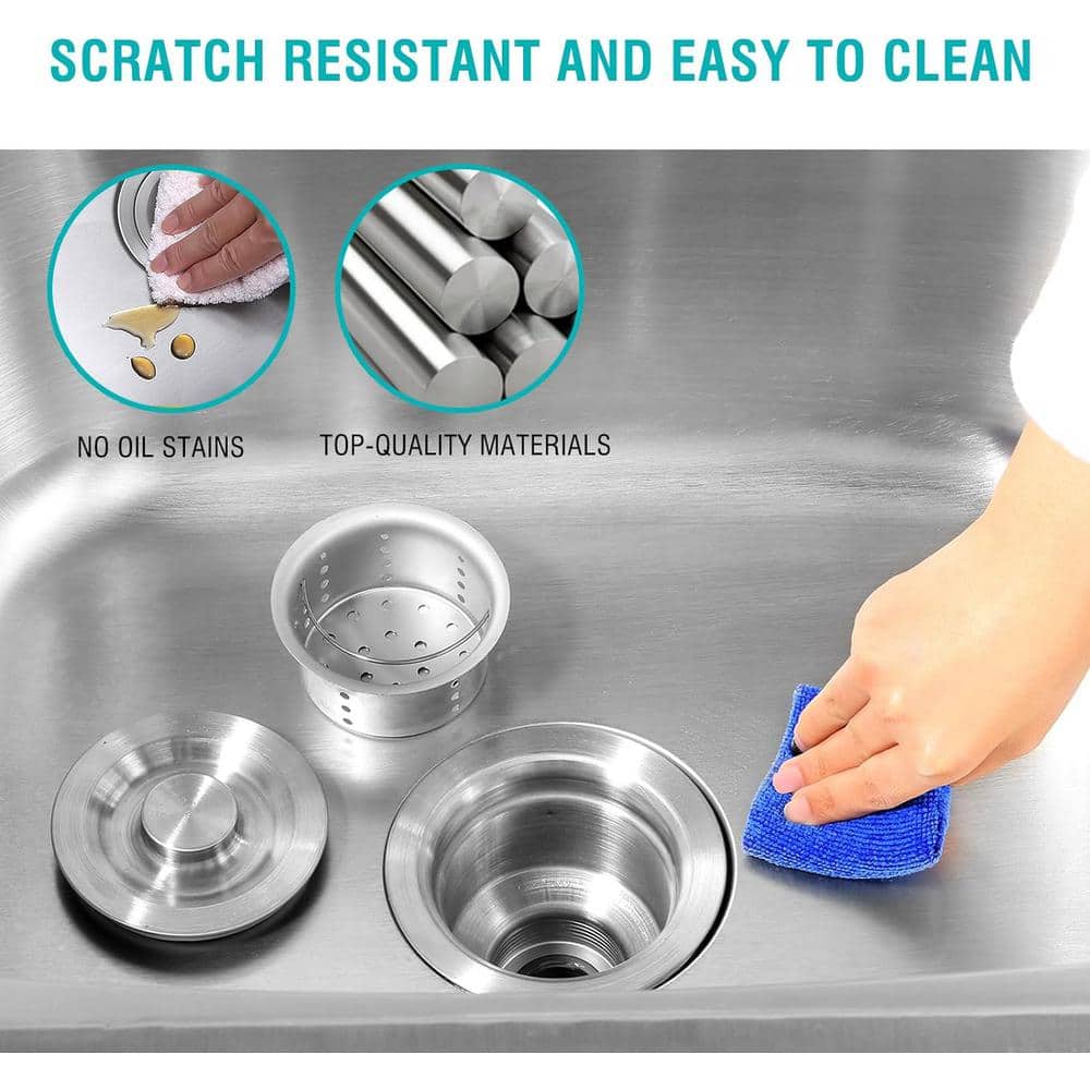 Q: How do I clean the sink? A: Thanks to its polished stainless steel surface, the sink can be cleaned easily with a mild detergent and a soft cloth.