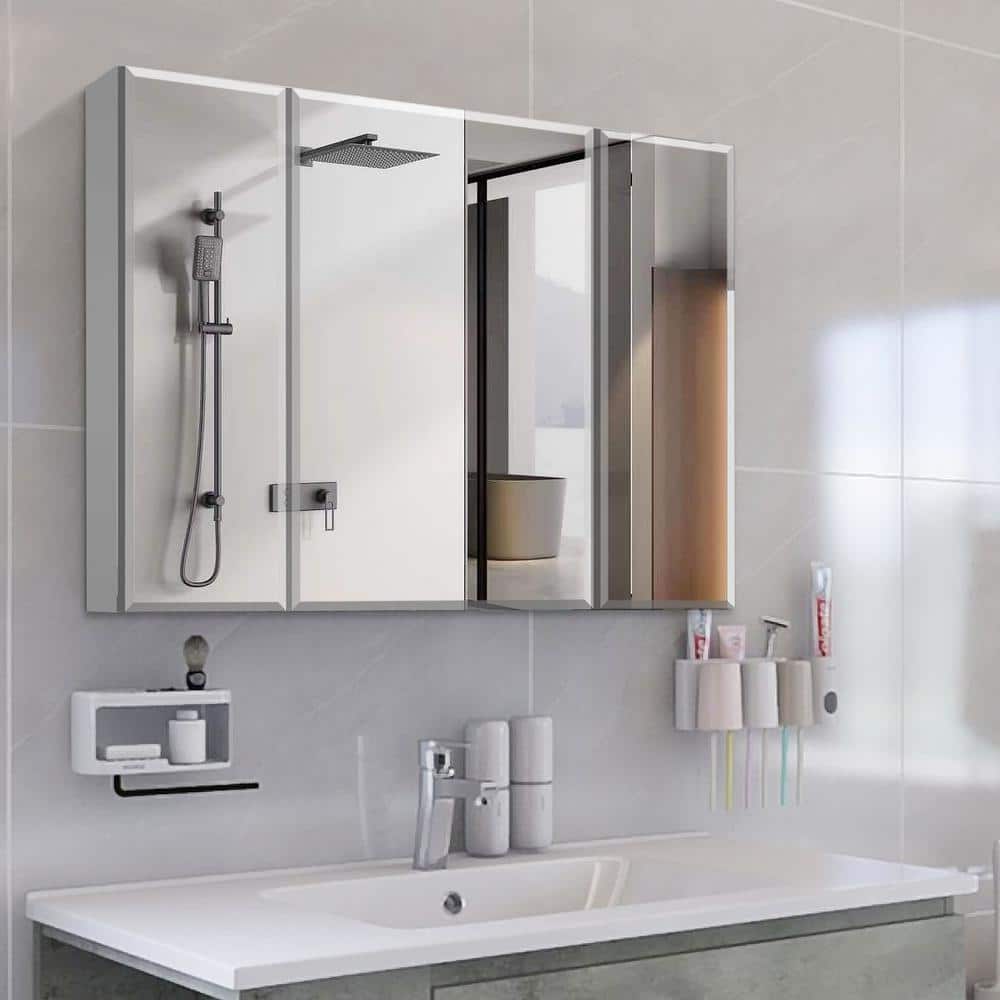 Elevate your bathroom with the sleek and functional Silver Aluminum Medicine Cabinet. Combining a copper-free silver mirror with adjustable shelving and a soft-closing hinge, it provides both elegance and practicality. Ideal for decluttering your space, this cabinet also offers the versatility of recessed or surface mounting.