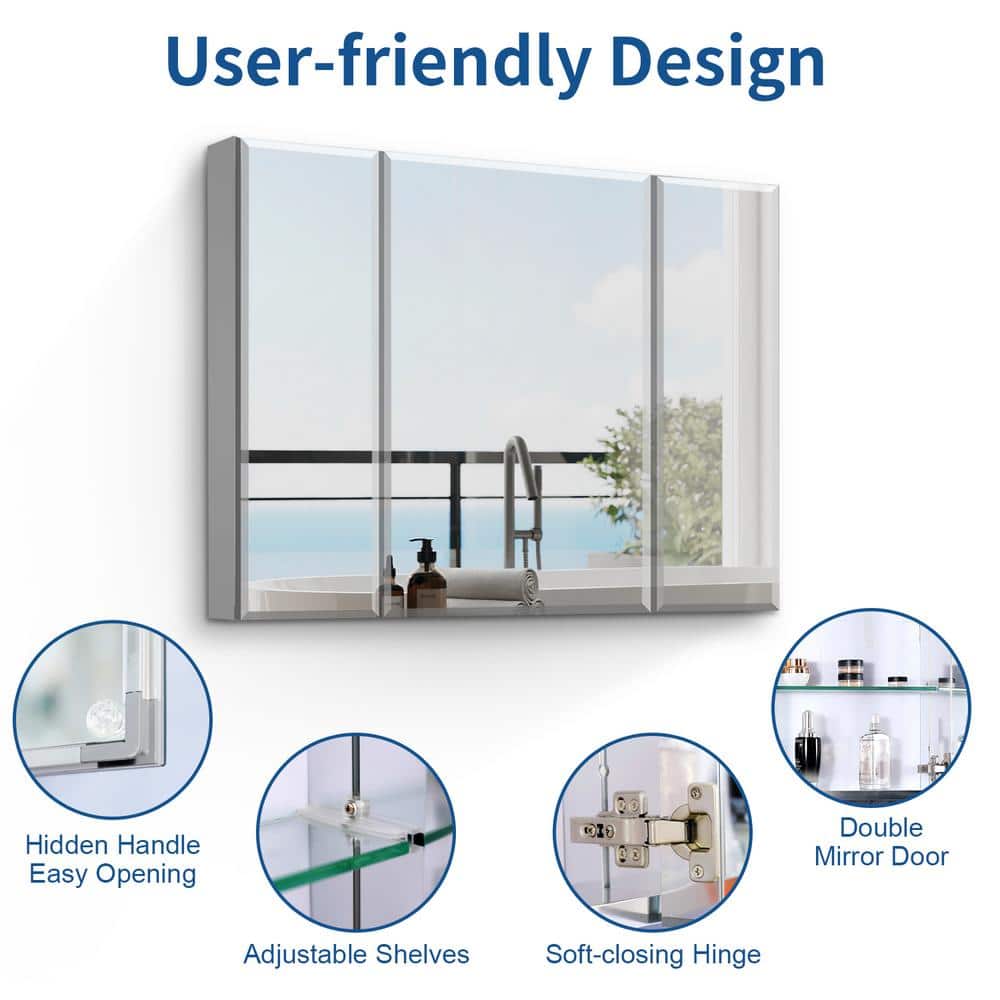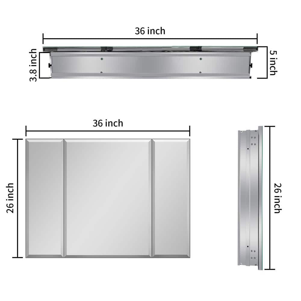 Unbranded 36 in. W x 26 in. H Large Rectangular Silver Aluminum Recessed Surface Mount Medicine Cabinet with Mirror