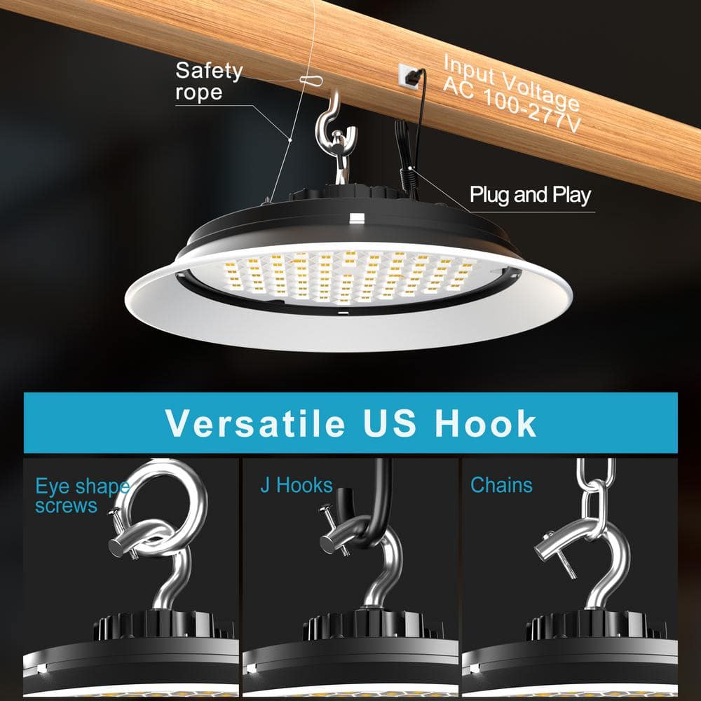 Easy Installation: Comes with US hook, mounting hardware, and 3-pin plug for direct connection to AC 100-277V.