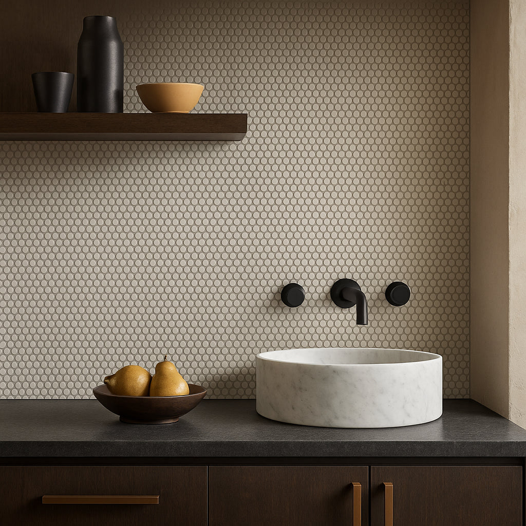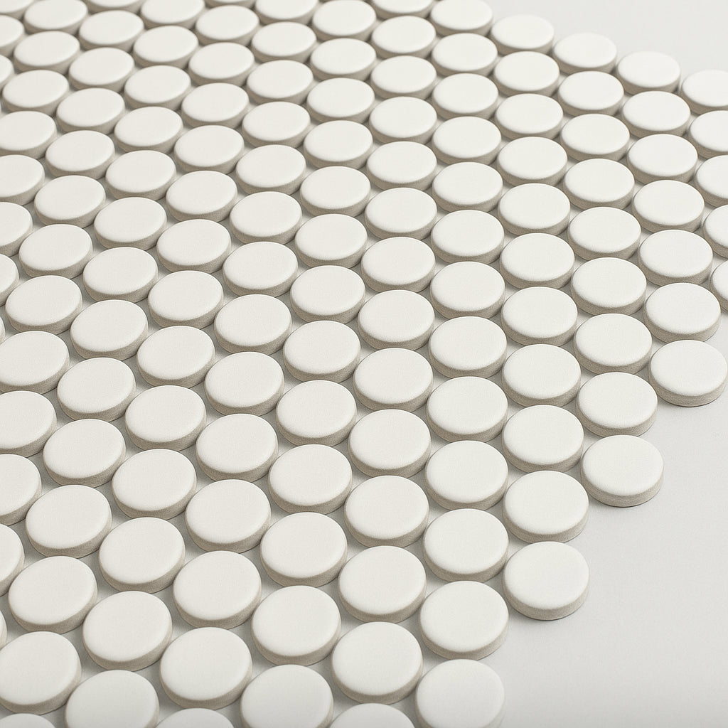 Transform your space with the Unglazed White Penny Porcelain Mosaic Tile, perfect for adding a touch of elegance and durability.