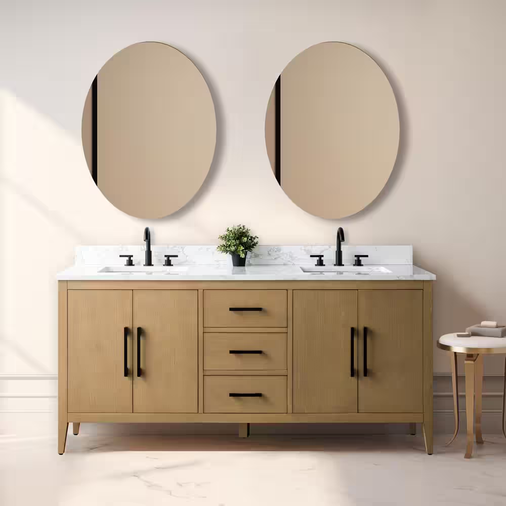Transform your bathroom into a luxurious sanctuary with the Vanity Art double-sink vanity. With dimensions of 72 inches in width, 22 inches in depth, and 34 inches in height, this exquisite piece blends expert craftsmanship with a beautiful engineered marble top in Arabescato White, providing both elegance and practicality. Its spacious design ensures ample storage, while the warm natural oak finish elevates the overall aesthetic of your space.