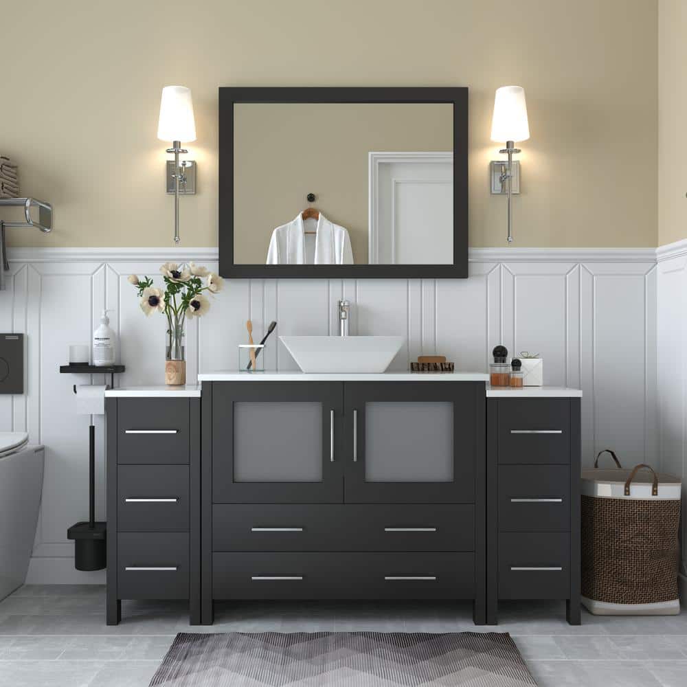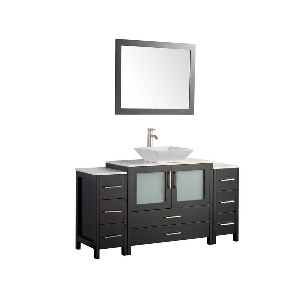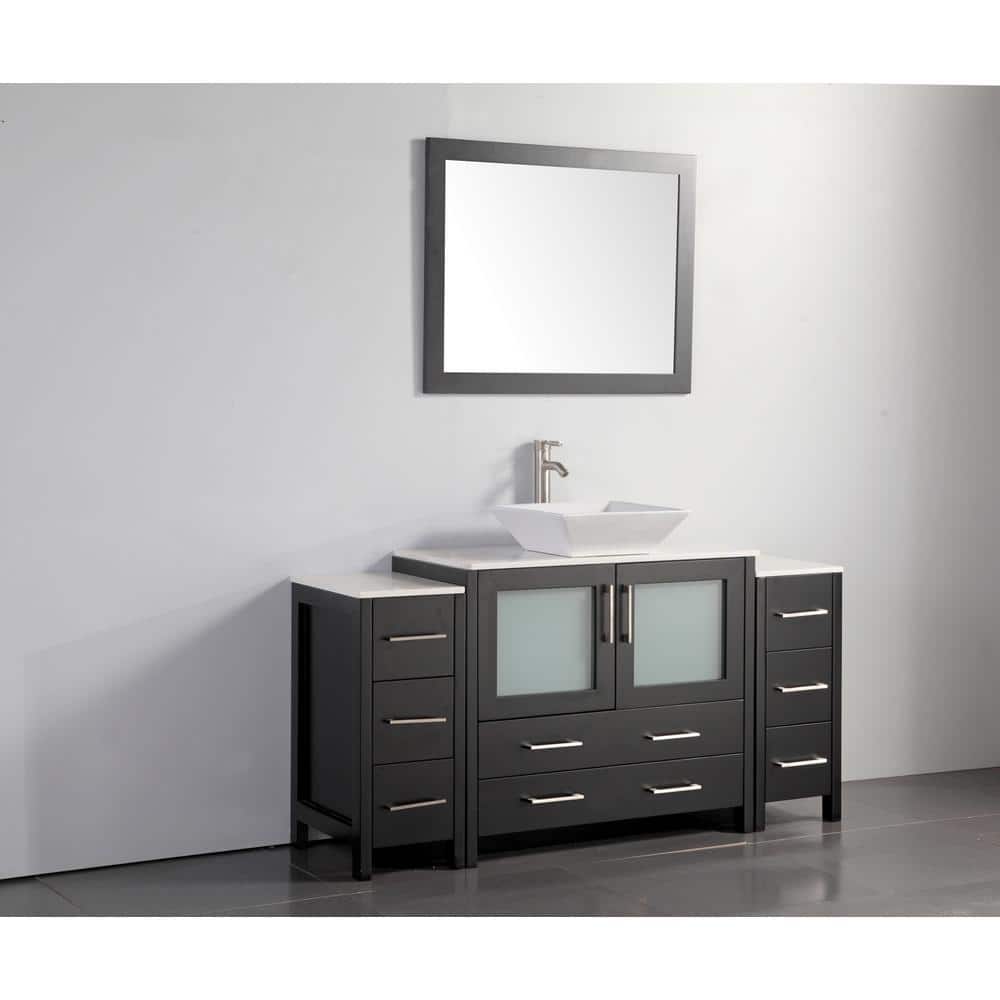 Vanity Art Ravenna 60-inch Bathroom Vanity in Espresso with Single Basin in White Engineered Marble Top and Mirror