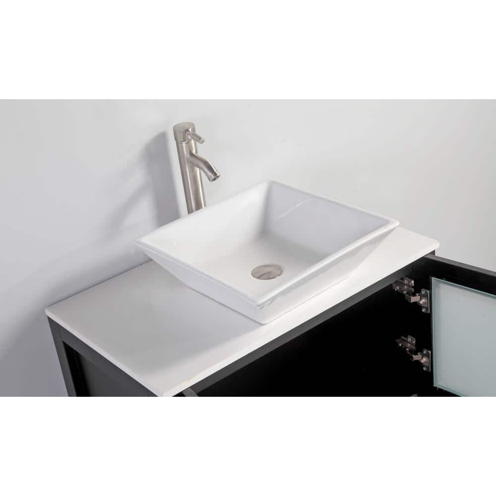 Engineered Marble Top: The white engineered marble top is not only stylish but also easy to maintain, resisting water stains and wear. (Note: Faucet not included)