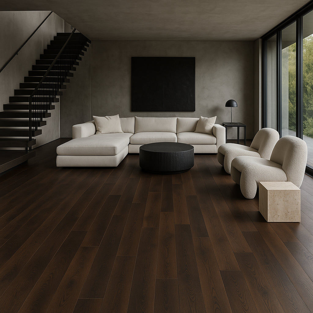 Upgrade your home with VERT HAUS Dark Roast Oak flooring for a sustainable and stylish living space.