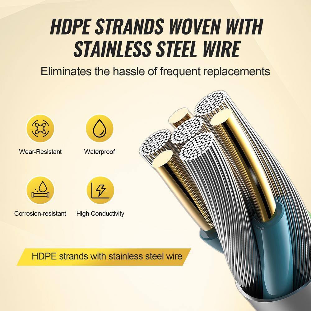 • Durable Material: Made from HDPE fibers and stainless steel strands for long-lasting use and rust resistance.