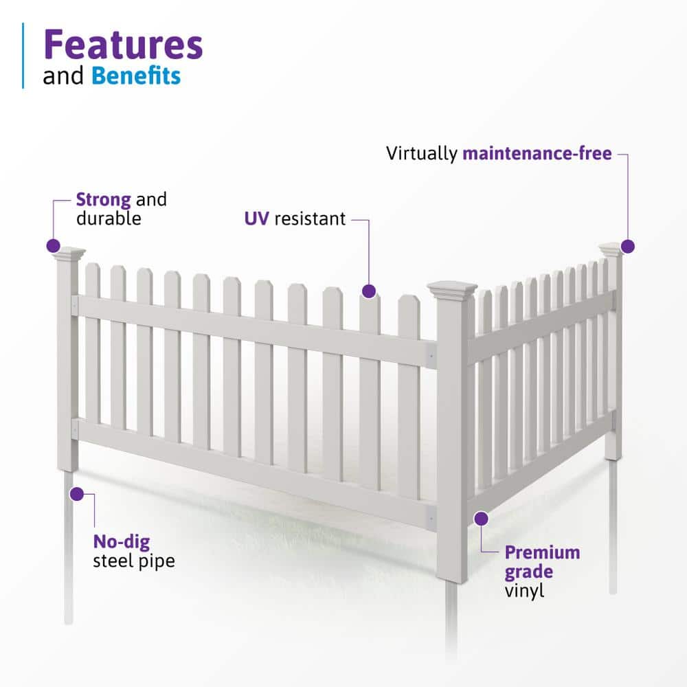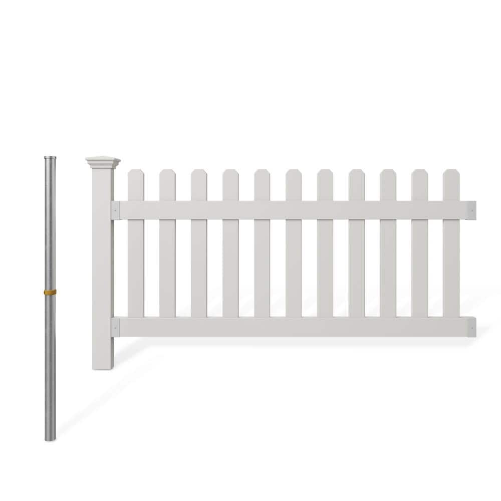 WamBam Fence 3 ft. x 6 ft. Newport Picket Vinyl Fence with No-Dig Steel Pipe Anchor Kit
