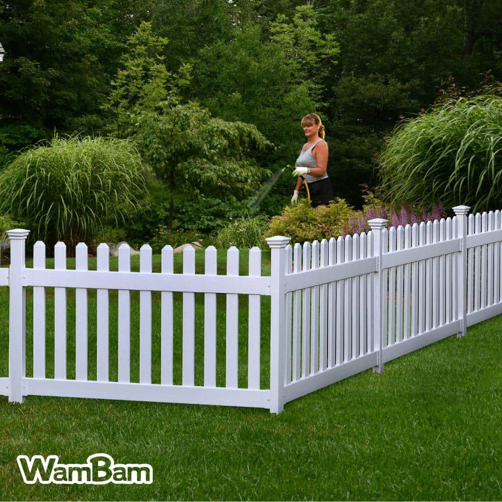 The WamBam Fence Newport Picket Vinyl Fence offers a no-dig, maintenance-free solution to outdoor fencing. Built with premium weather-proof PVC, this fence ensures long-lasting beauty and performance. Ideal for gardens, pets, and child safety, its simple installation method bypasses the hassle of concrete and excavation.