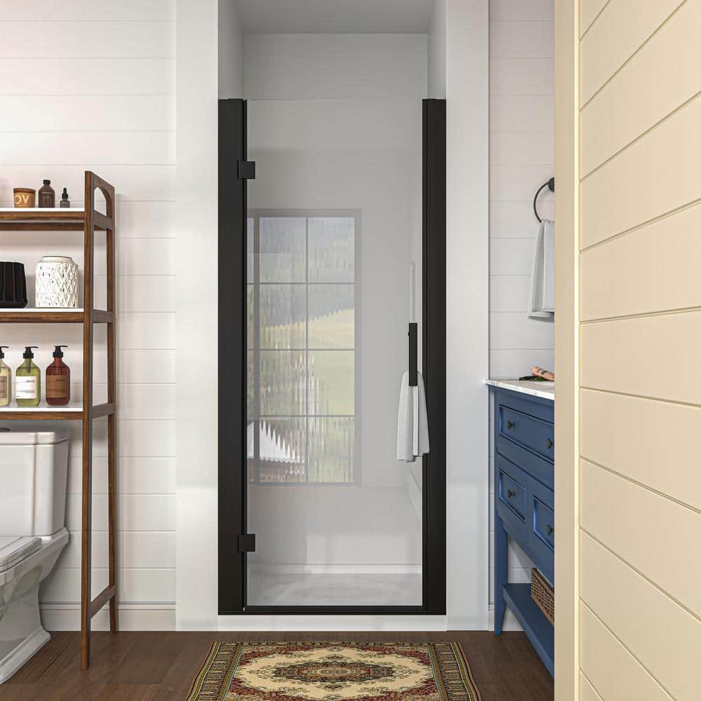 Upgrade your bathroom with the Waterpar Frameless Pivot Shower Door, featuring a sleek, modern design in matte black and clear glass. This door combines style with practicality, offering an easy-to-clean surface that resists water spots. With a sturdy anodized aluminum track, it ensures lasting durability in any bathroom space.