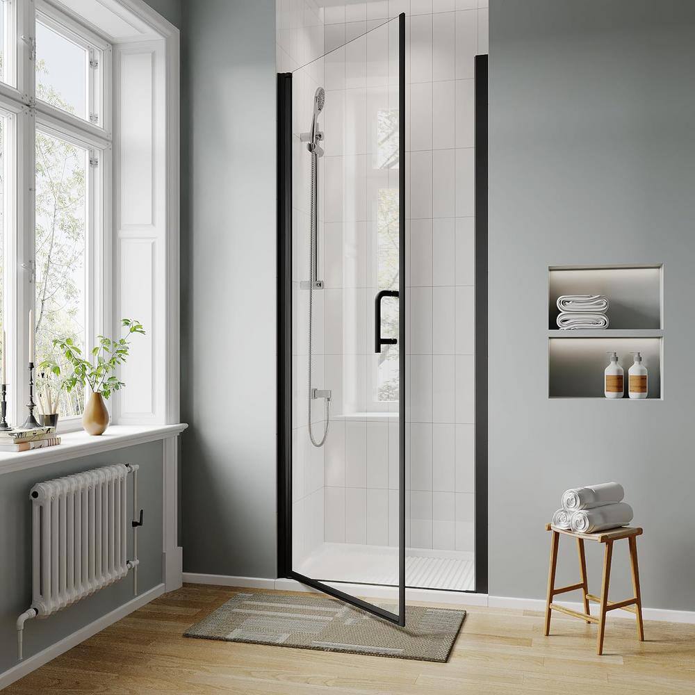 Space-Efficient Design: Outward swinging pivot door maximizes shower space.