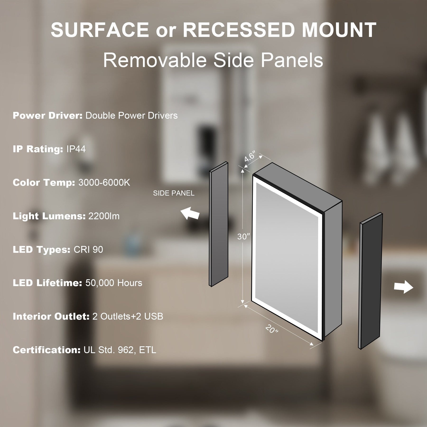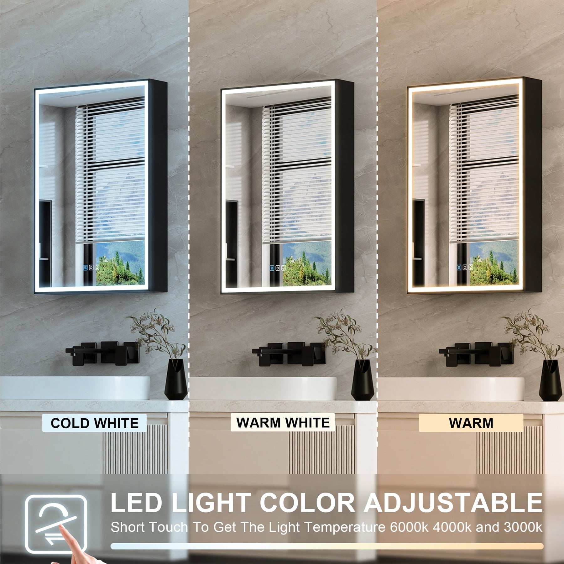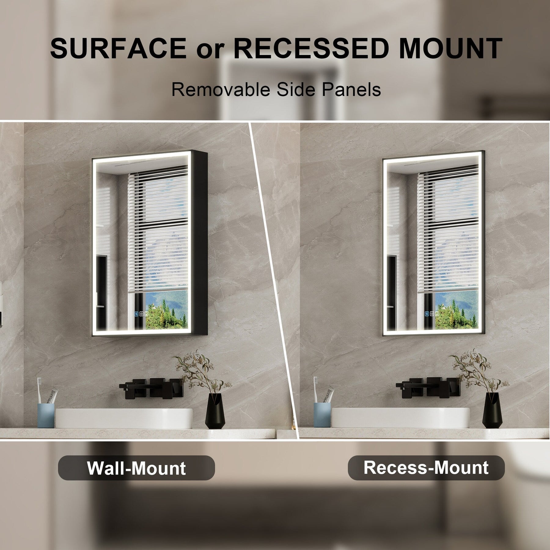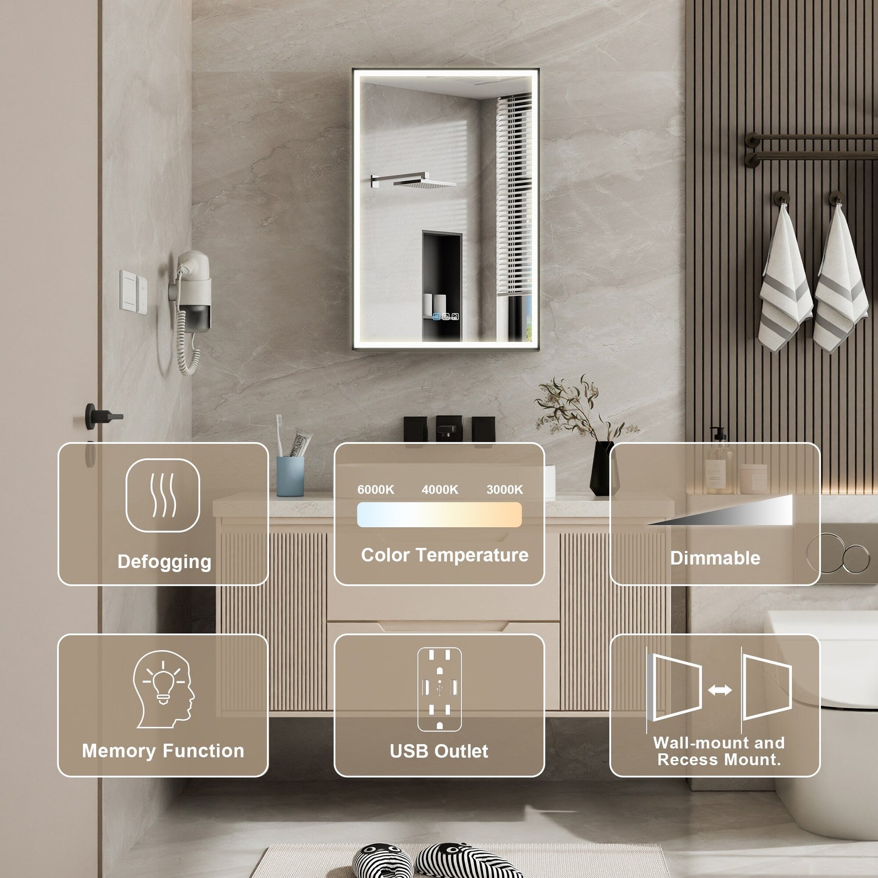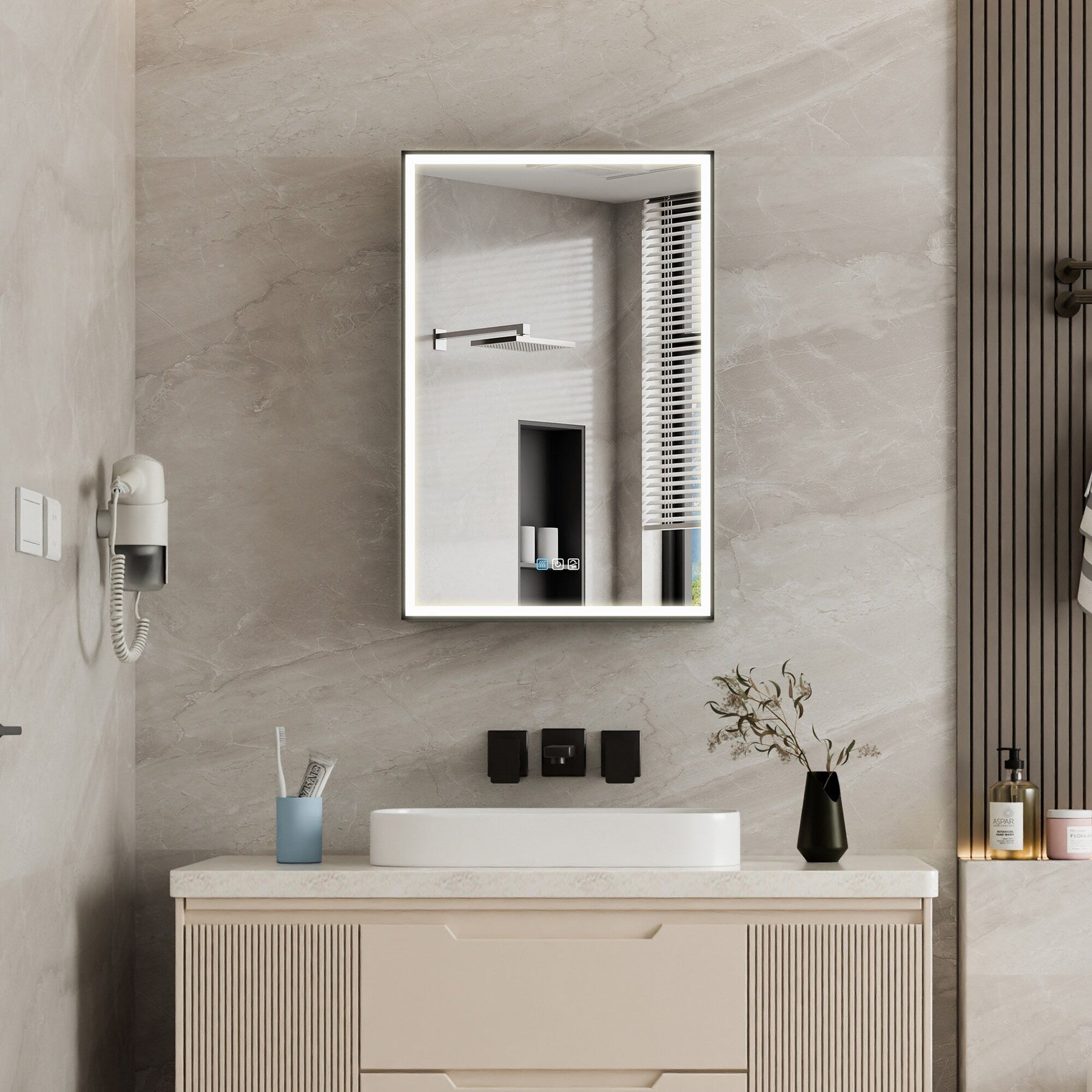Transform your bathroom with the WELLFOR 20-in x 30-in LED Fog Free Medicine Cabinet, offering cutting-edge convenience with an elegant design. Featuring a sleek black aluminum frame, this cabinet is equipped with softened close hinges, adjustable lighting, and an integrated power outlet, ensuring functionality meets style effortlessly.