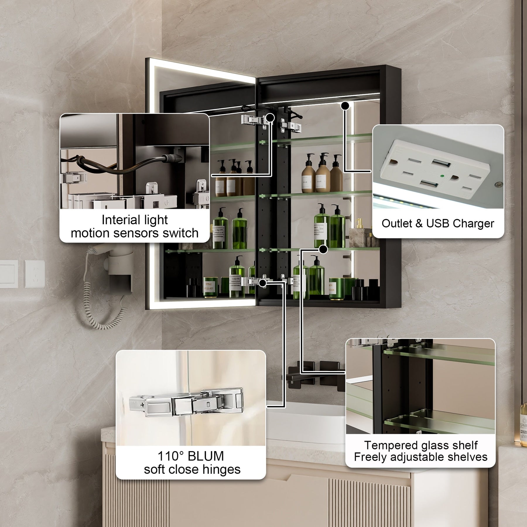 Q: How is the LED fog free feature powered? A: The cabinet is hardwired directly to your bathroom's electrical system, powering the LED lights and defogging feature seamlessly.