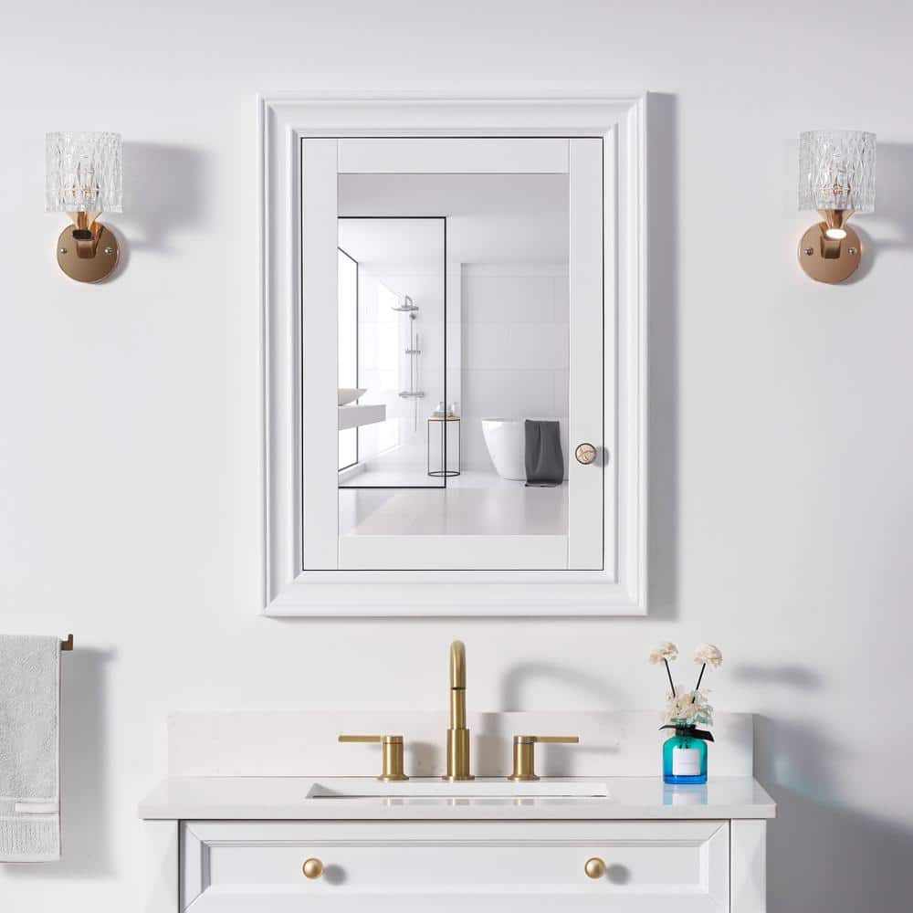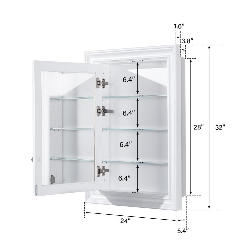 WELLFOR 24 in. W x 32 in. H Rectangular Solid Wood Recessed Medicine Cabinet with Mirror