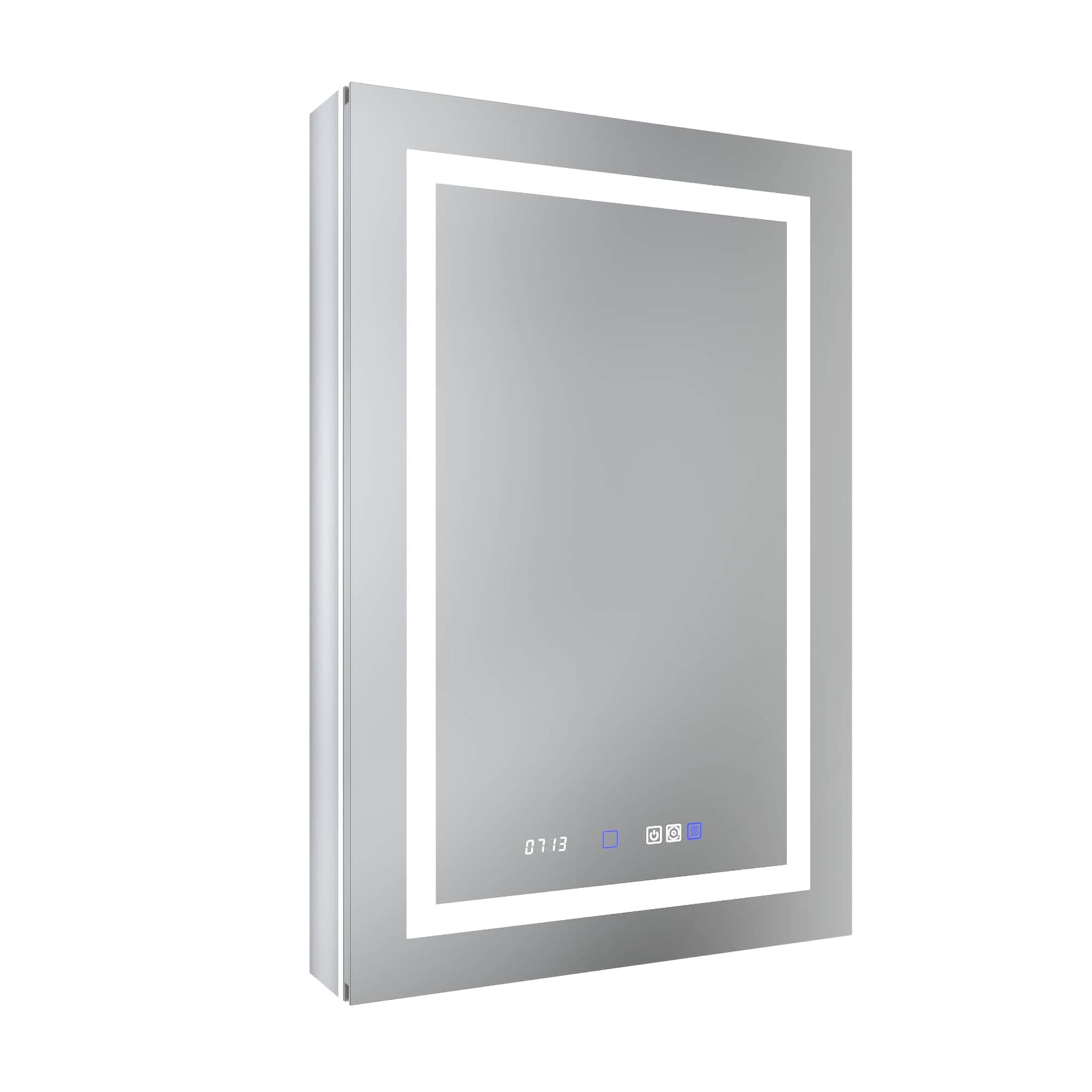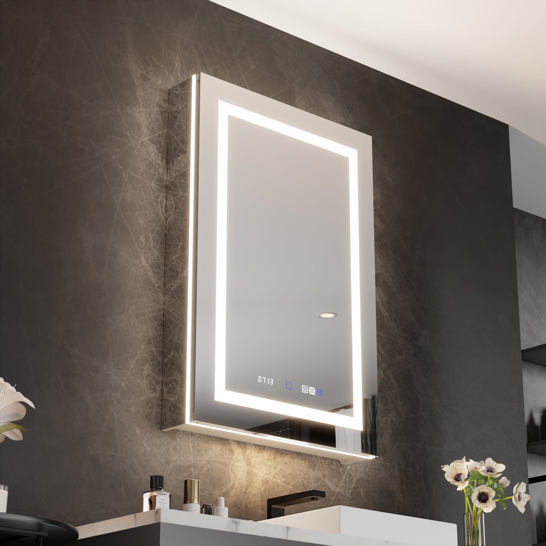 WELLFOR V11 24-in x 36-in Lighted LED Fog Free Surface/Recessed Mount Silver Mirrored Soft Close Medicine Cabinet with Outlet