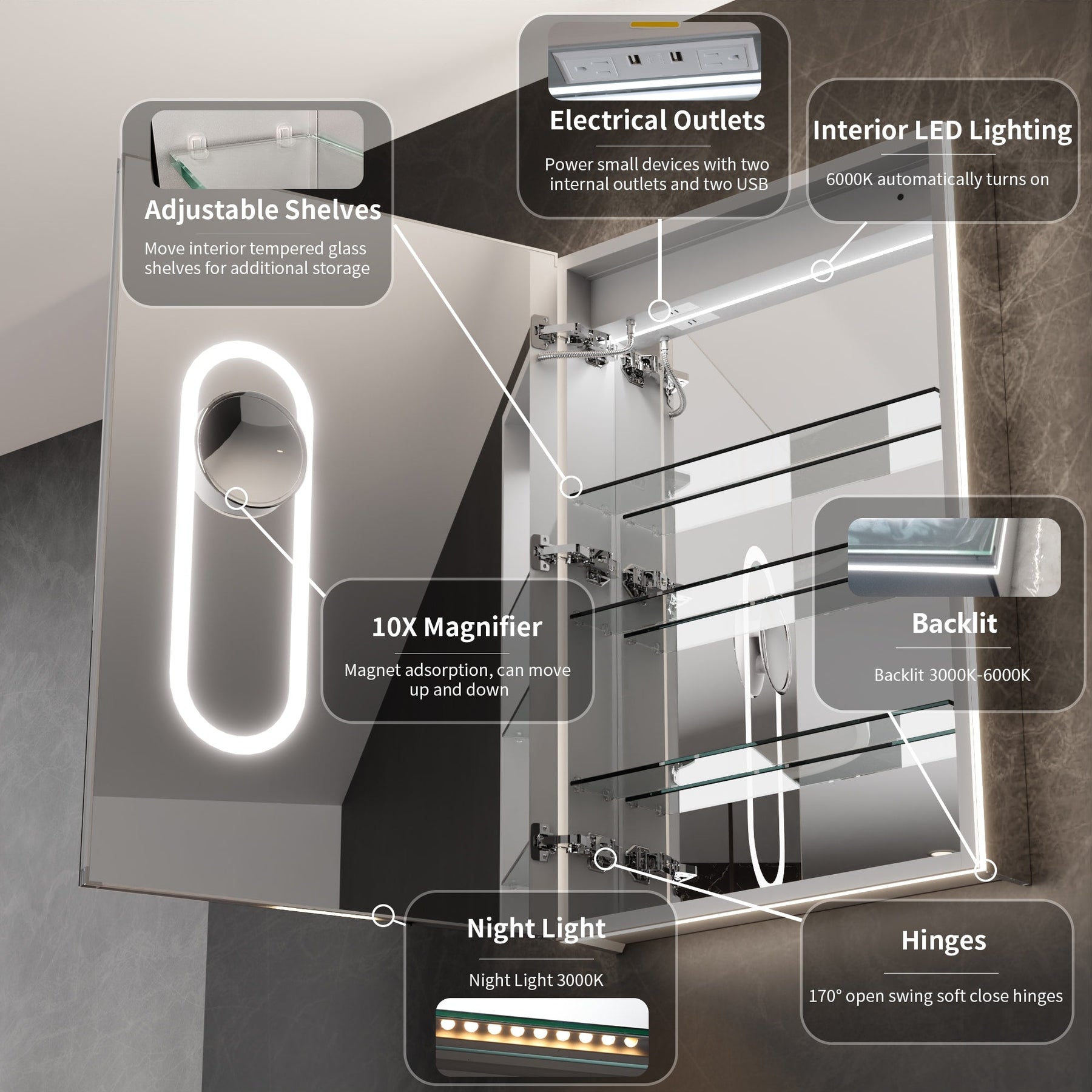 Lighted Fog-Free Medicine Cabinet with Soft Close