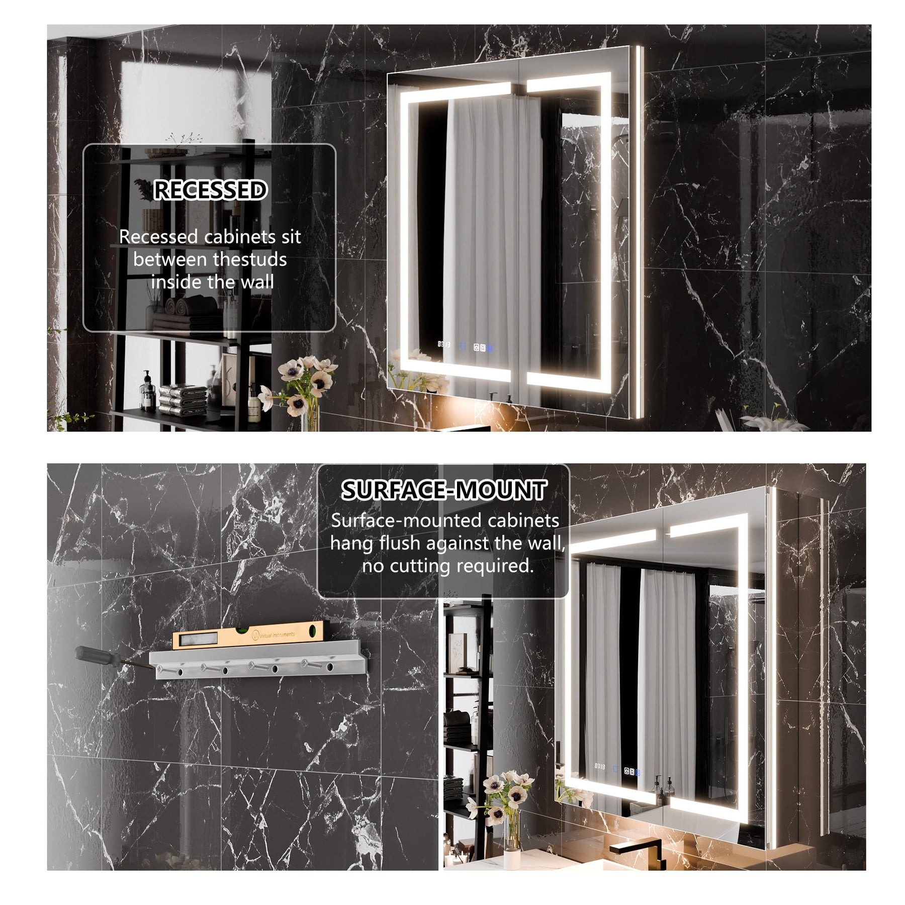 • Stepless Color Temperature: 3000K-6000K adjustable lighting for perfect bathroom ambiance.