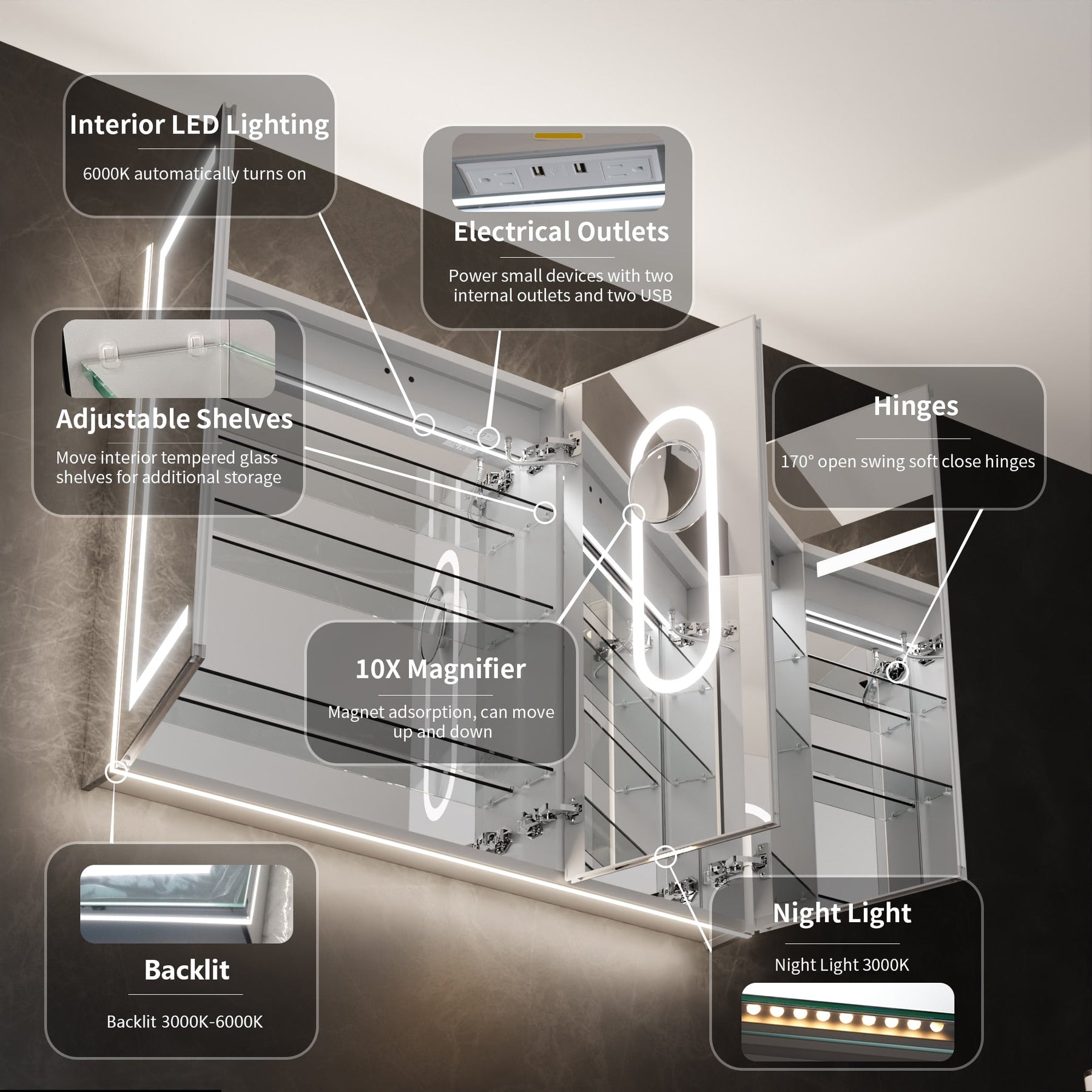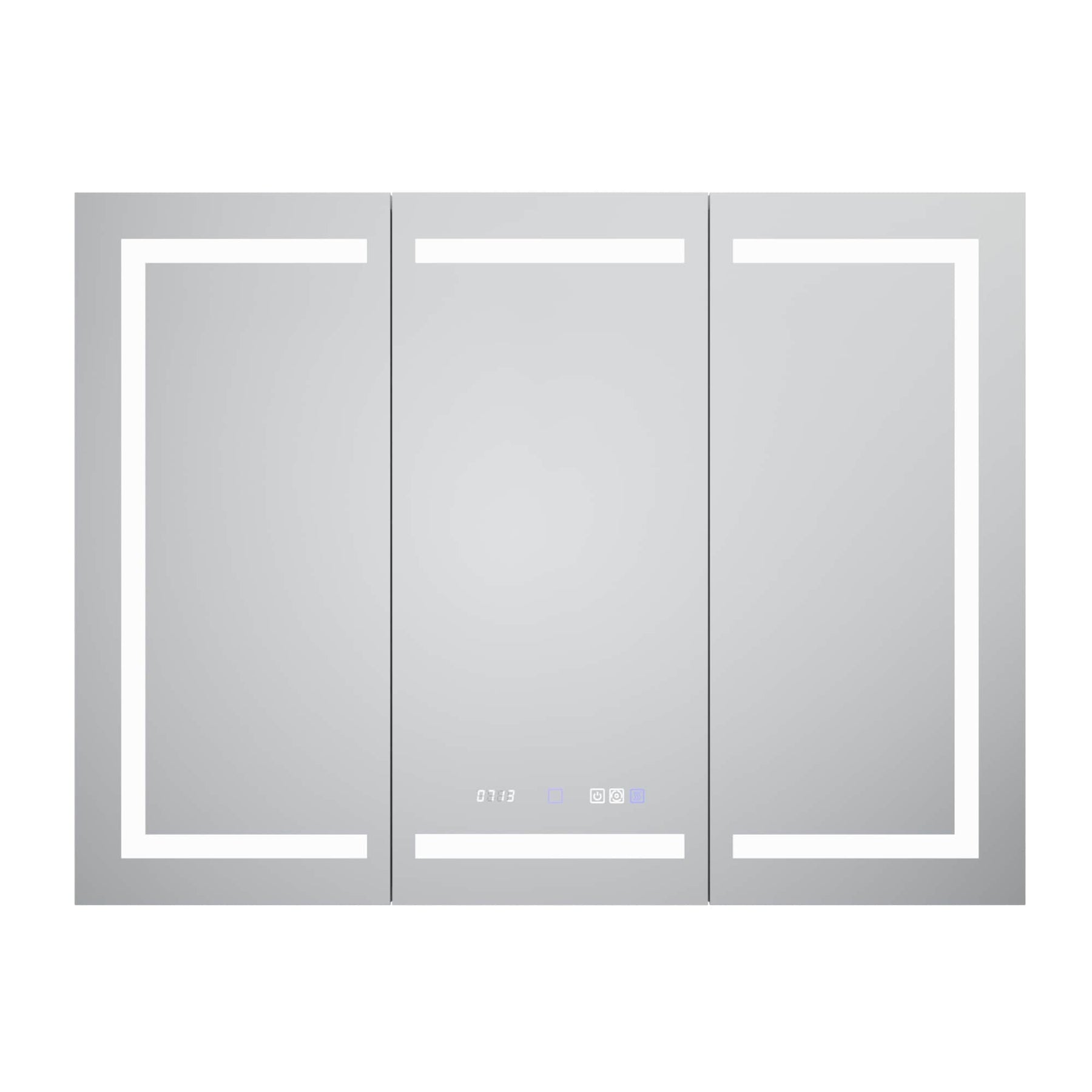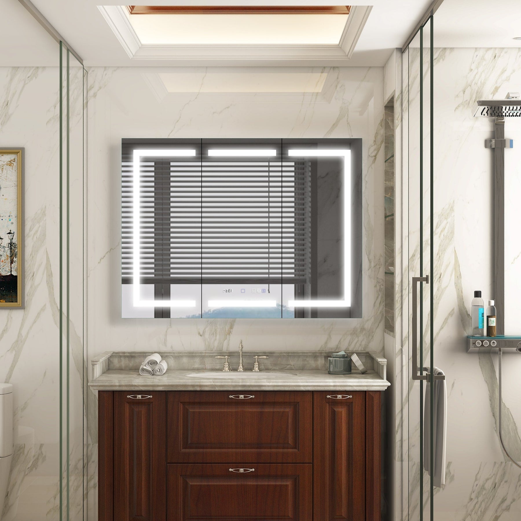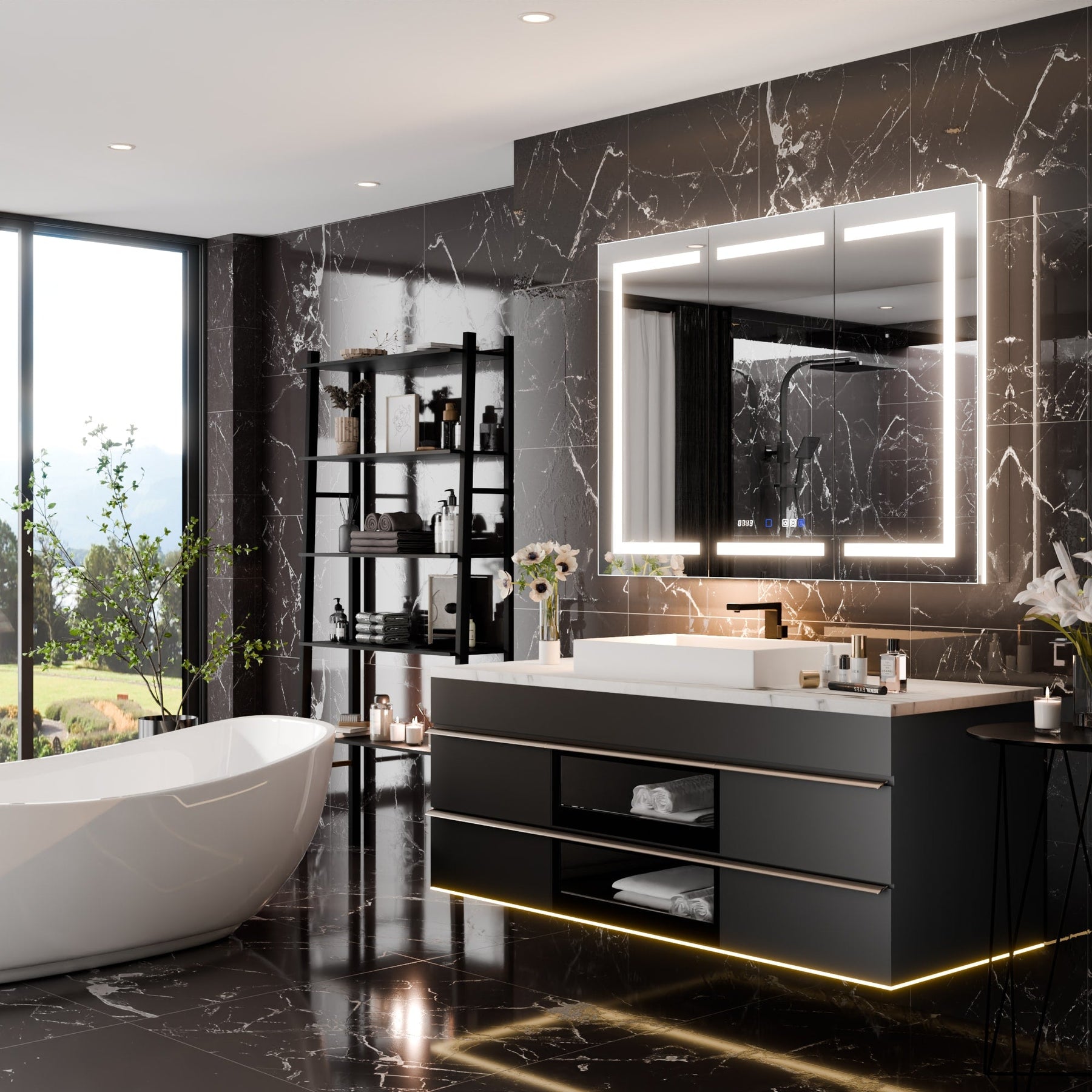 The WELLFOR V11 Lighted LED Medicine Cabinet transforms your bathroom into a sanctuary of style and technology. The frameless, mirrored surface reflects a minimalist aesthetic while offering a stunning visual experience enhanced by infinite dimmable lighting. Position this cabinet as a centerpiece, against a contrasting wall color, for a chic and modern look. Its sleek design and multifunctionality make it an essential fixture for luxurious living.