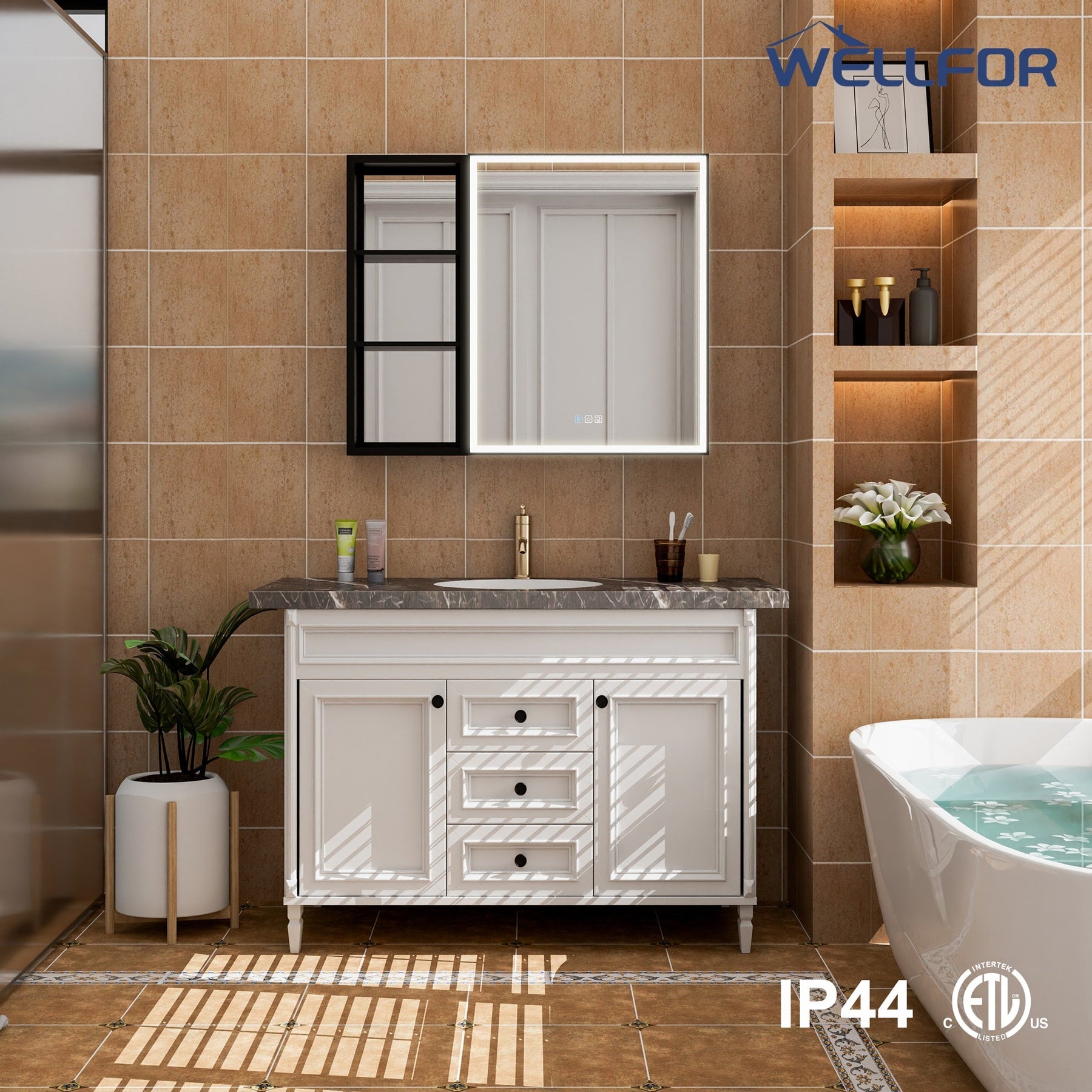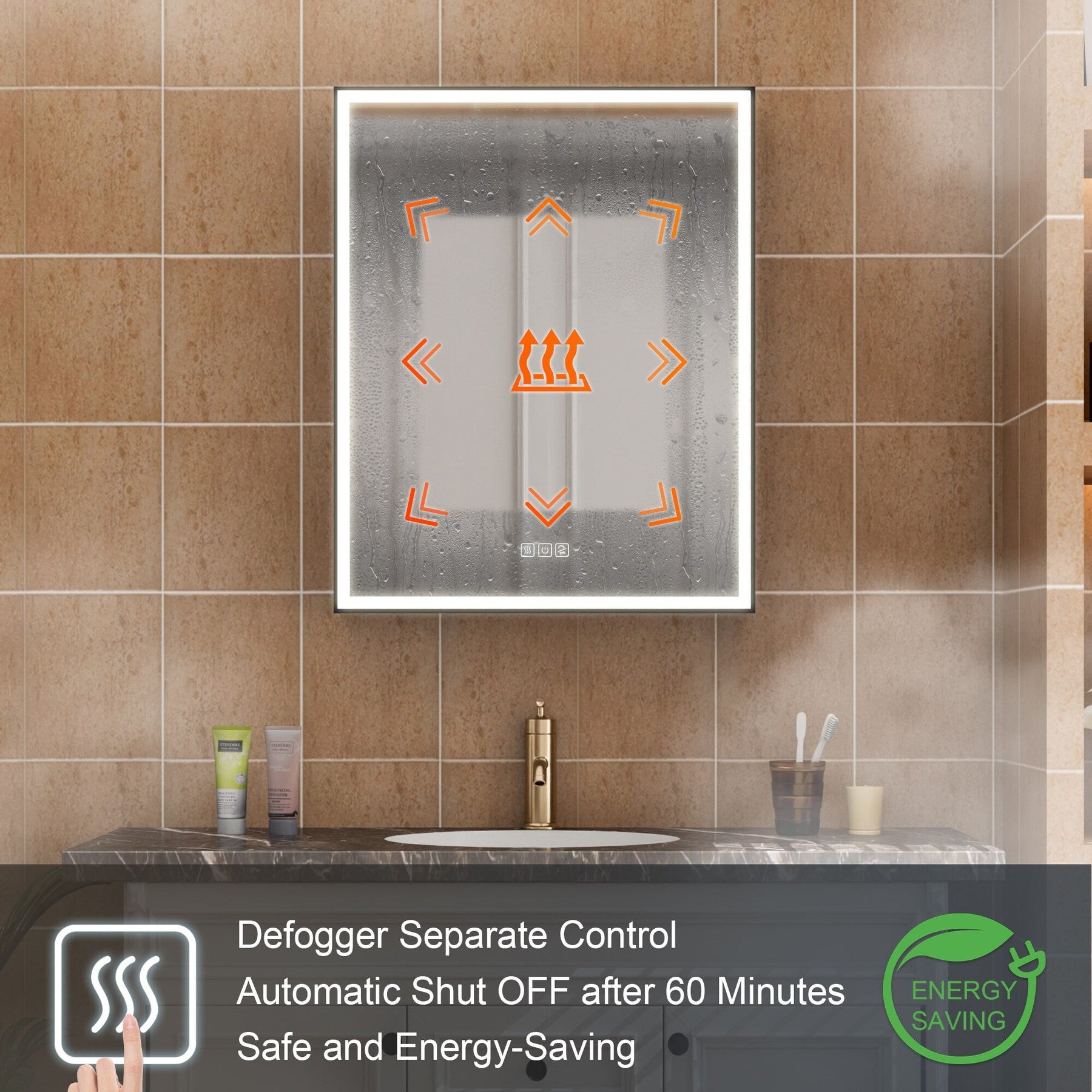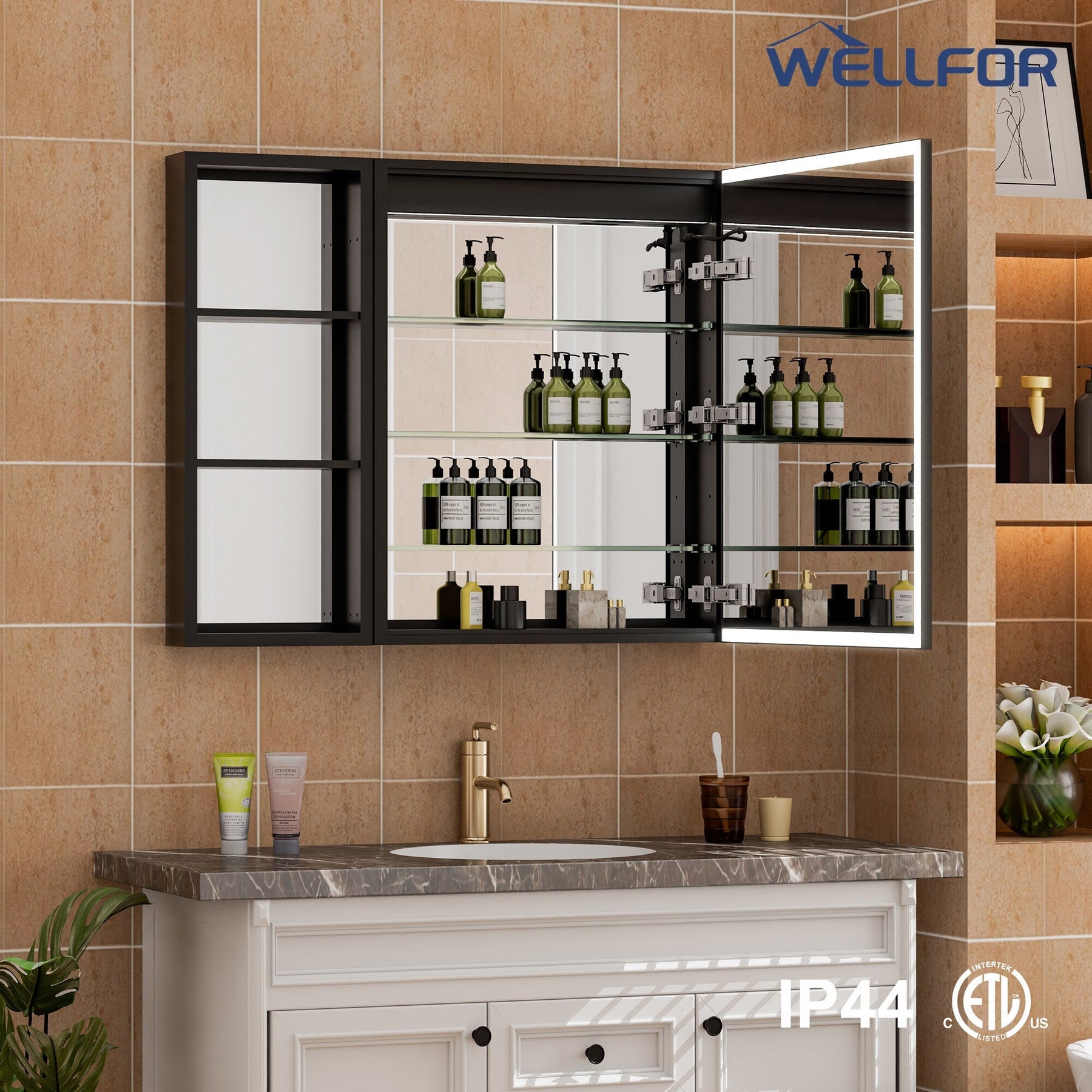 Redefine your bathroom space with the WELLFOR LED Fog-Free Medicine Cabinet. Crafted from anodized black aluminum, this durable and stylish cabinet combines modern design and advanced technology, featuring dimmable LED lighting and anti-fog technology for uncompromised functionality.