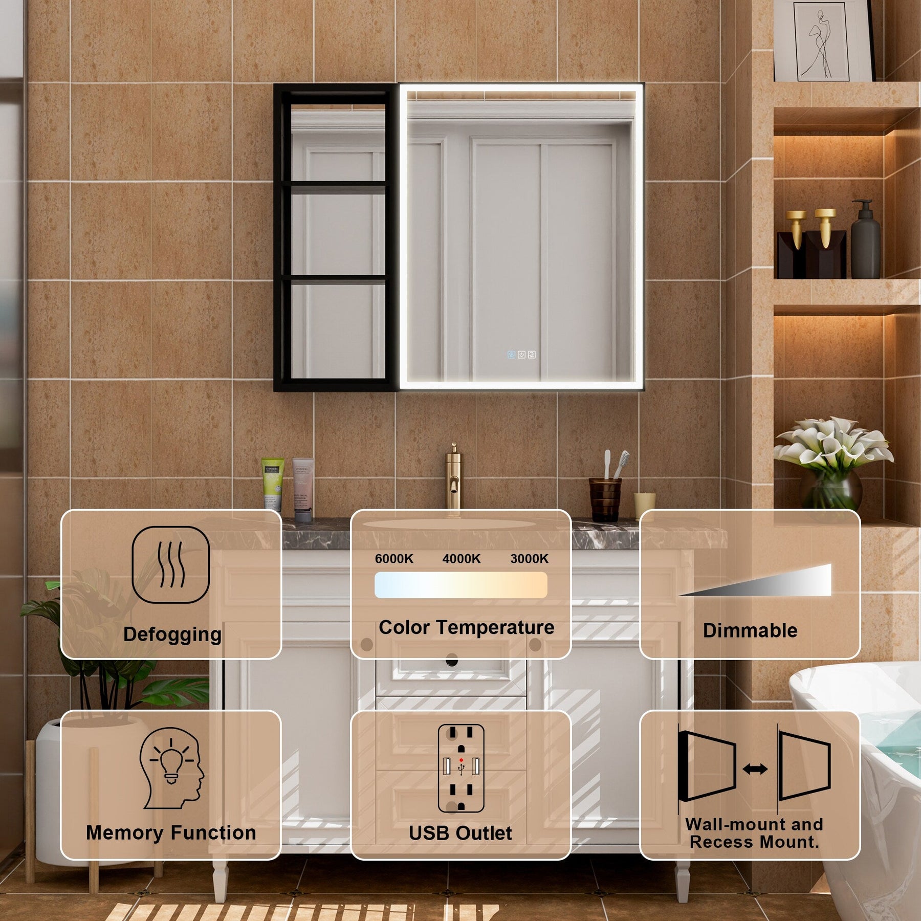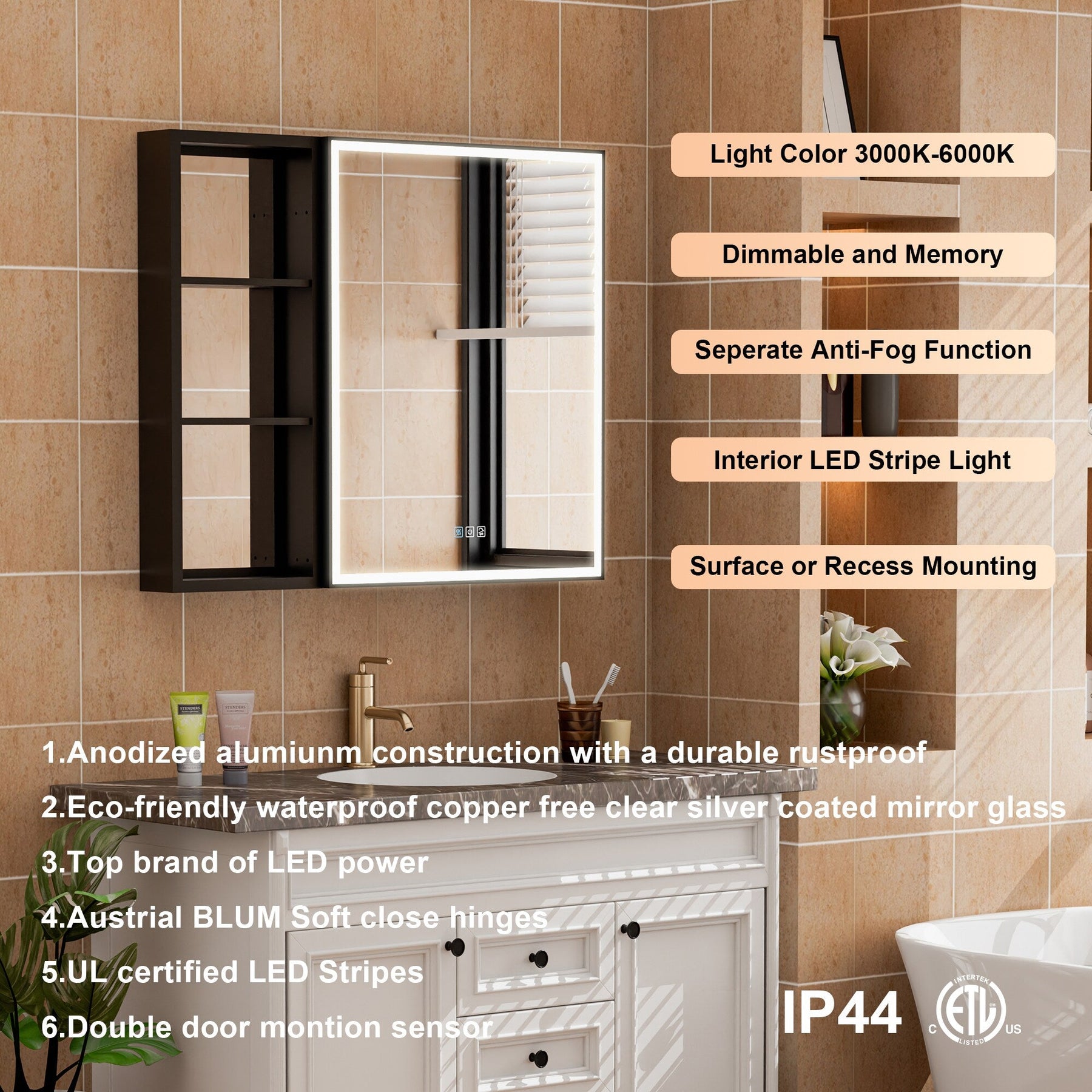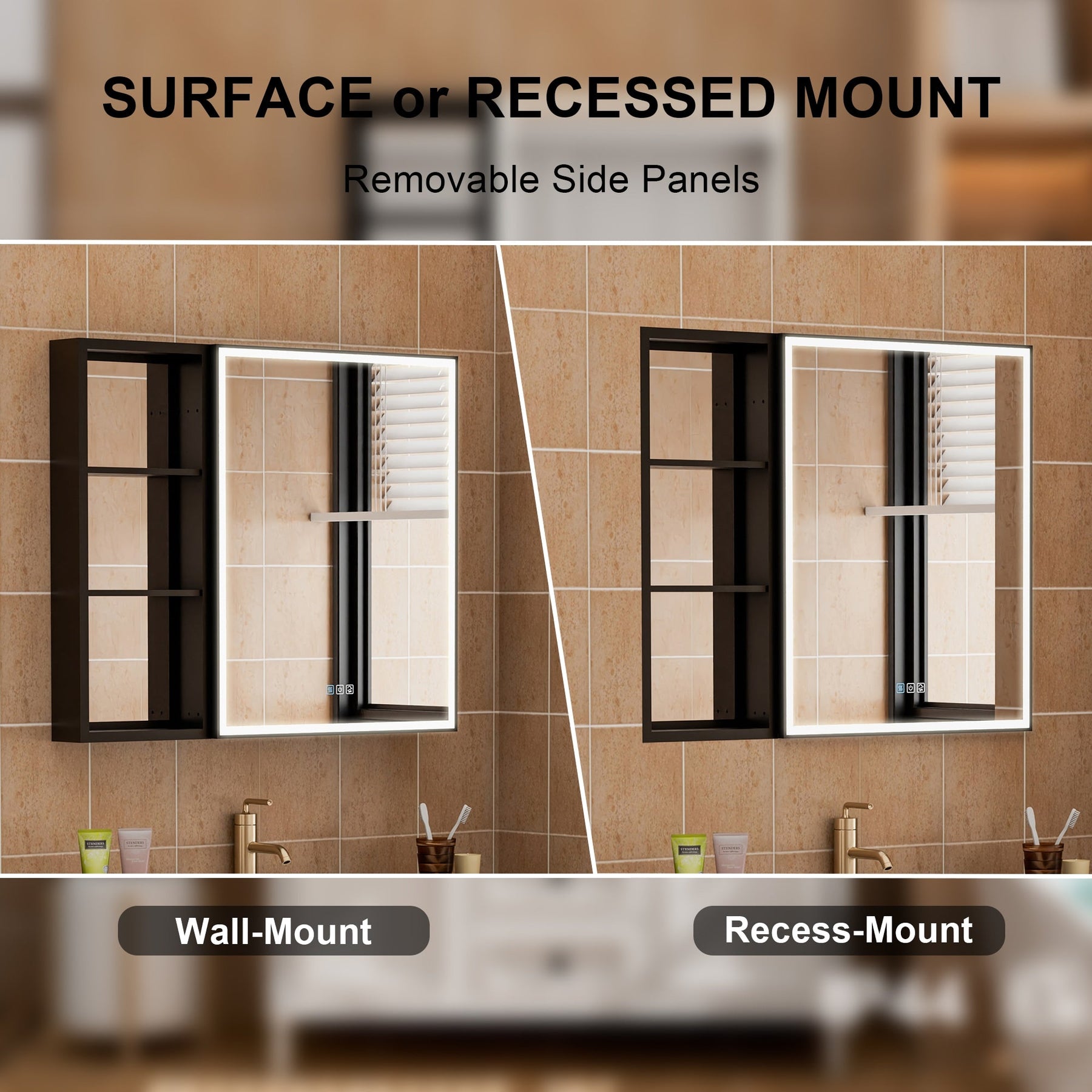 Redefine your bathroom space with the WELLFOR LED Fog-Free Medicine Cabinet. Crafted from anodized black aluminum, this durable and stylish cabinet combines modern design and advanced technology, featuring dimmable LED lighting and anti-fog technology for uncompromised functionality.