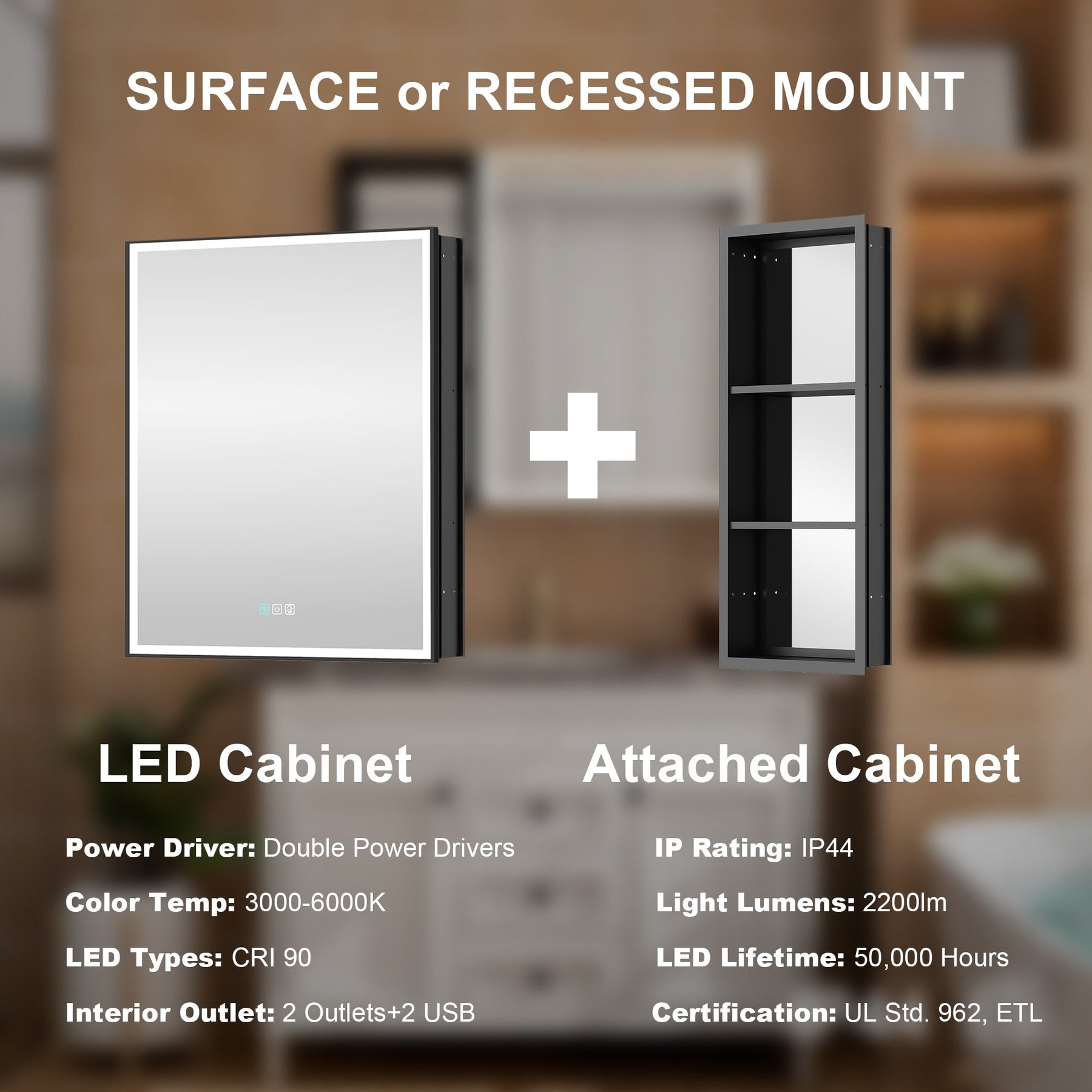 Illuminate your sanctuary with the luxurious WELLFOR LED Medicine Cabinet. Its sleek anodized black frame delivers an understated elegance, while the dimmable LED lights cast a warm ambiance across your space, making it feel both contemporary and cozy. Capture the beauty of minimalist design by pairing this fixture with marble or stone surrounds for an upscale look. With its seamless blend of functionality and style, this medicine cabinet is your gateway to a refined and modern retreat.