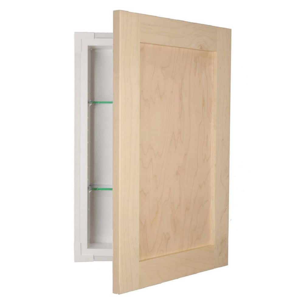 The Fieldstone Shaker Recessed Medicine Cabinet offers a seamless blend of utility and style for any bathroom. Its solid maple door and solid pine box ensure durability, while adjustable glass shelves provide ample storage for bathroom essentials. With soft close concealed hinges and a customizable finish, this cabinet is designed for lasting elegance and ease of use.