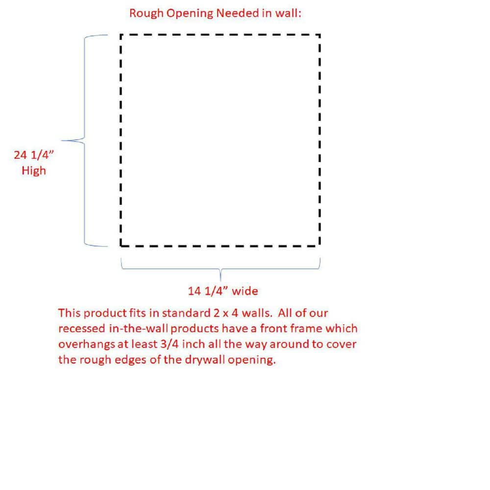 Q: Does the cabinet fit in standard walls? A: Yes, the cabinet is designed to fit into standard 2 x 4 wall framing.