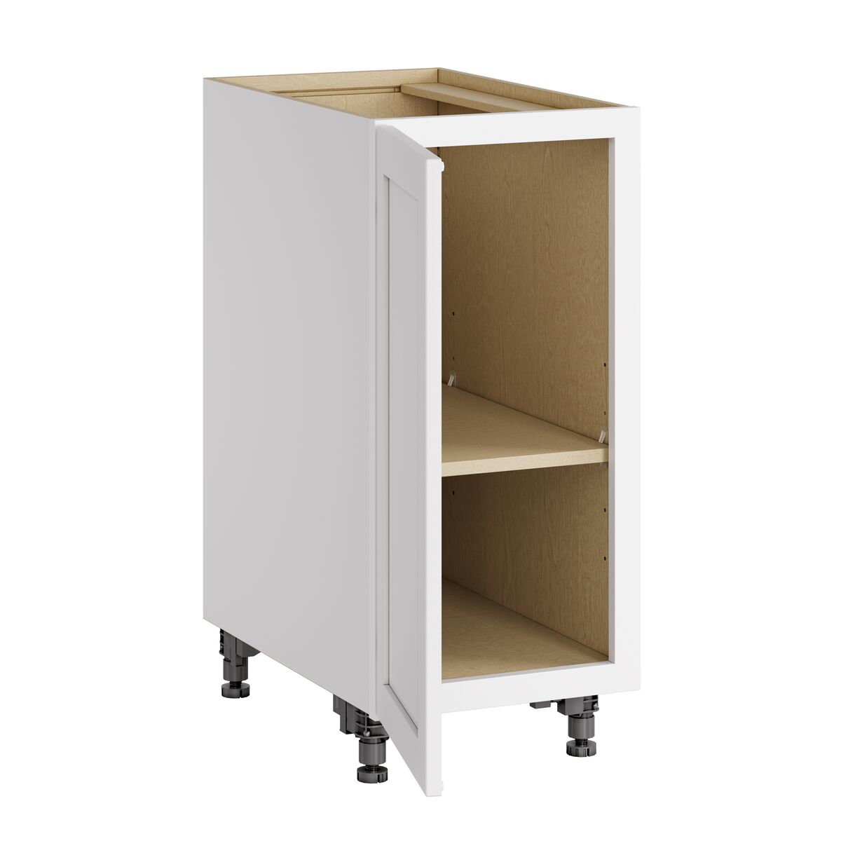 Q: Are the shelves adjustable? A: Yes, the cabinet comes with 3/4-in thick adjustable shelves that provide full cabinet depth, allowing for customizable storage solutions.