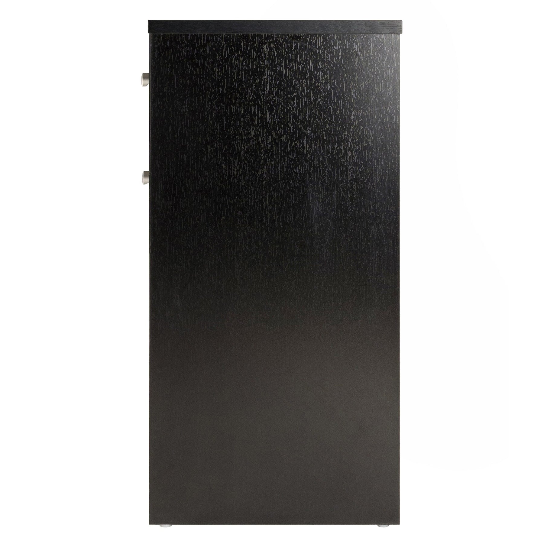 The Ava Black Nightstand offers a stylish transitional design, perfect for modernizing any bedroom. Crafted from durable composite wood, it provides two top drawers and an open cabinet, ideal for tidying away nighttime essentials while adding a touch of elegance with its sleek black finish and satin-finish metal knobs.