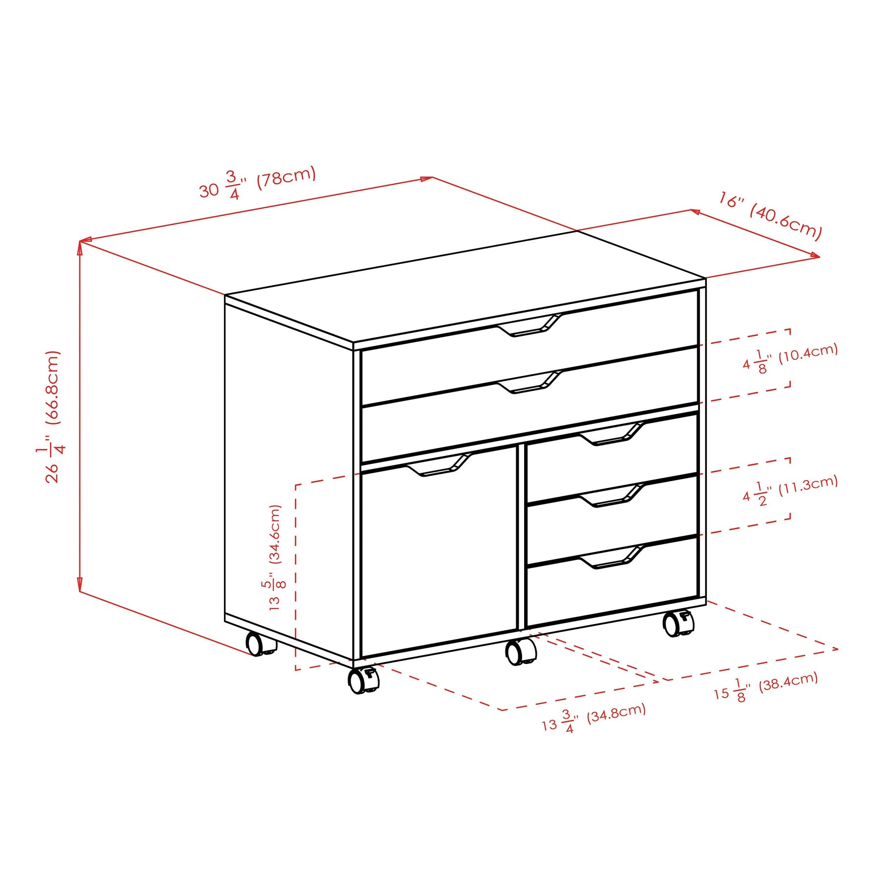 Q: What are the dimensions of the drawers? A: Wide drawers measure 27.56in W x 11.73in D x 25.56in H, while smaller drawers measure 13.23in W x 11.73in D x 2.56in H.