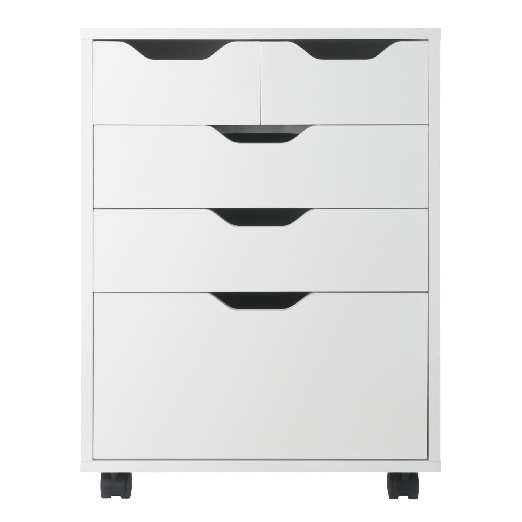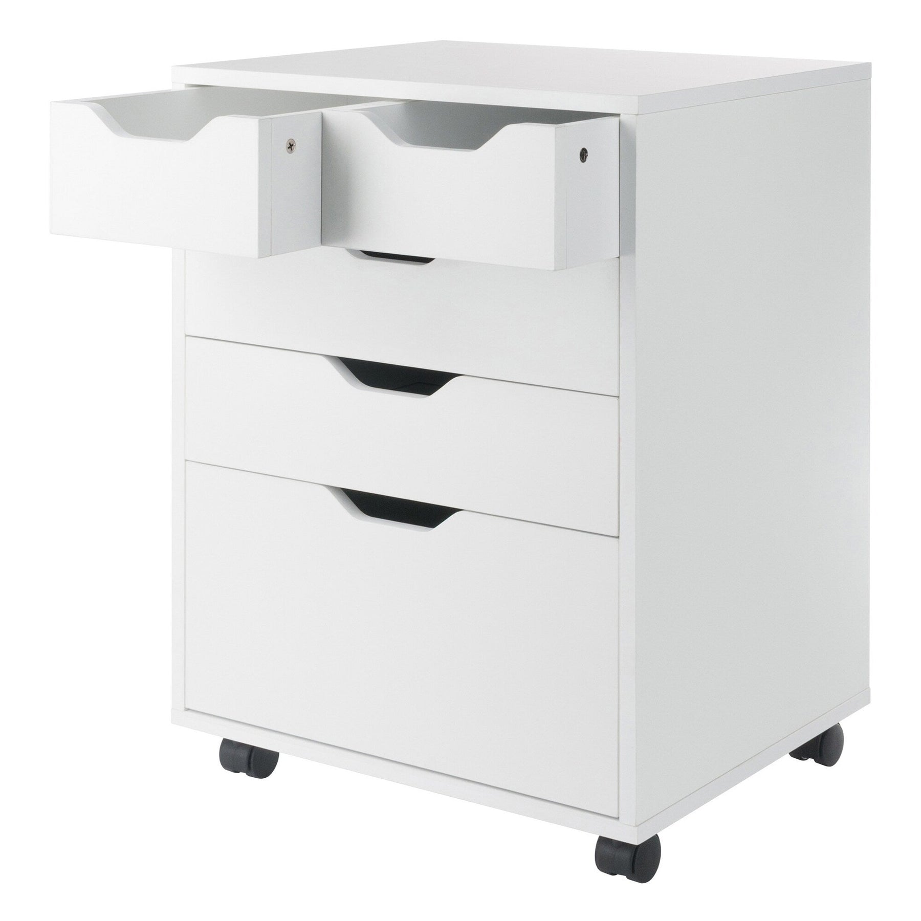 This elegant and versatile Halifax 4-Drawer Mobile File Cabinet is perfect for organizing your home. Crafted from sturdy composite wood, its modern design in a pristine white finish features easy-glide drawers and removable storage bins that enhance accessibility and functionality. Ideal for any room in your house, this cabinet is a stylish solution to decluttering spaces.