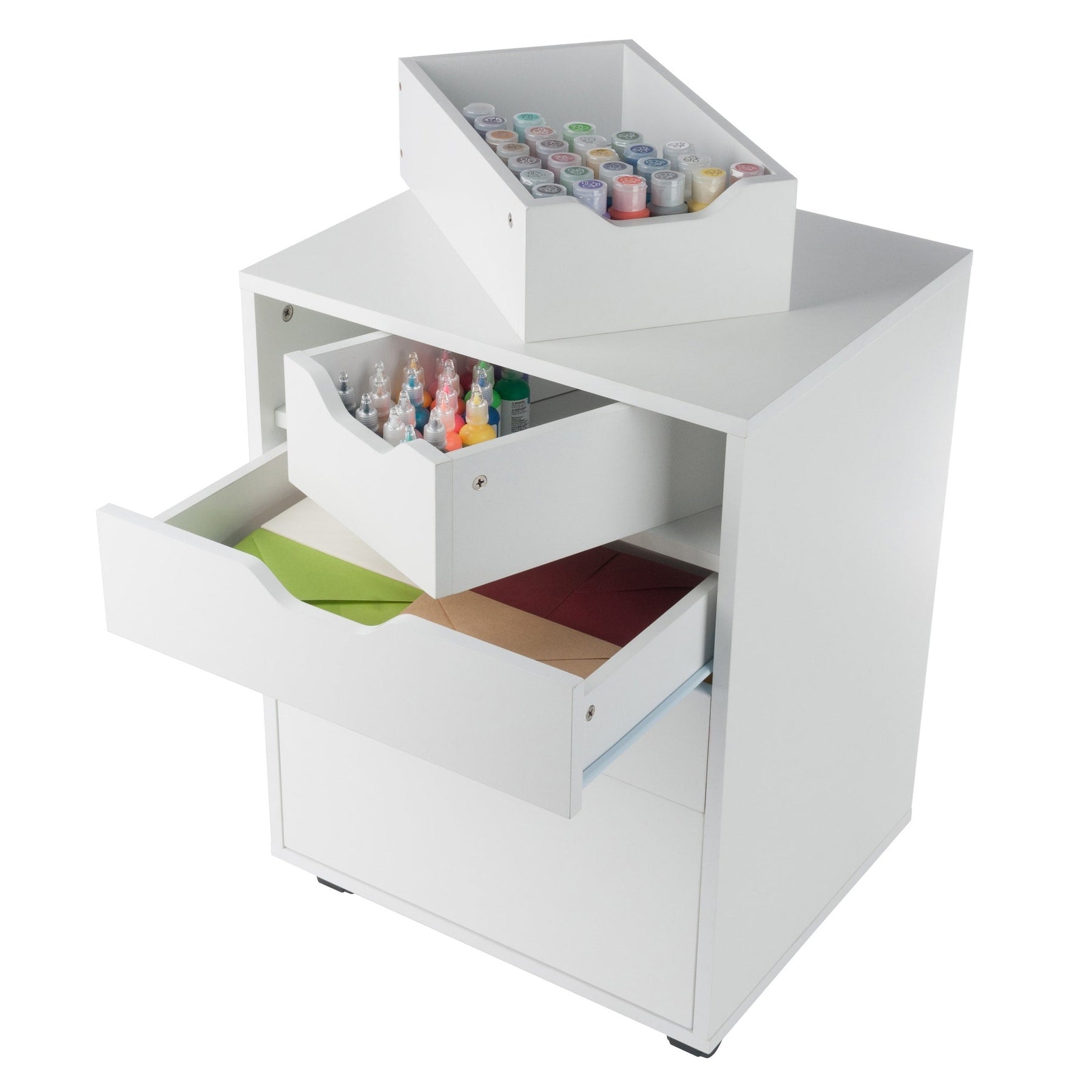 Transform cluttered corners into organized oases with this stylish Halifax file cabinet. The crisp white finish provides a refreshing contrast against bold walls or muted tones, adding a touch of sophistication. Use it creatively in a home office to manage cables and office supplies, or roll it into a living space as a mobile craft center. Essential for both practical and aesthetic upliftment, this cabinet is a must-have for refined, contemporary living with a personalized touch.