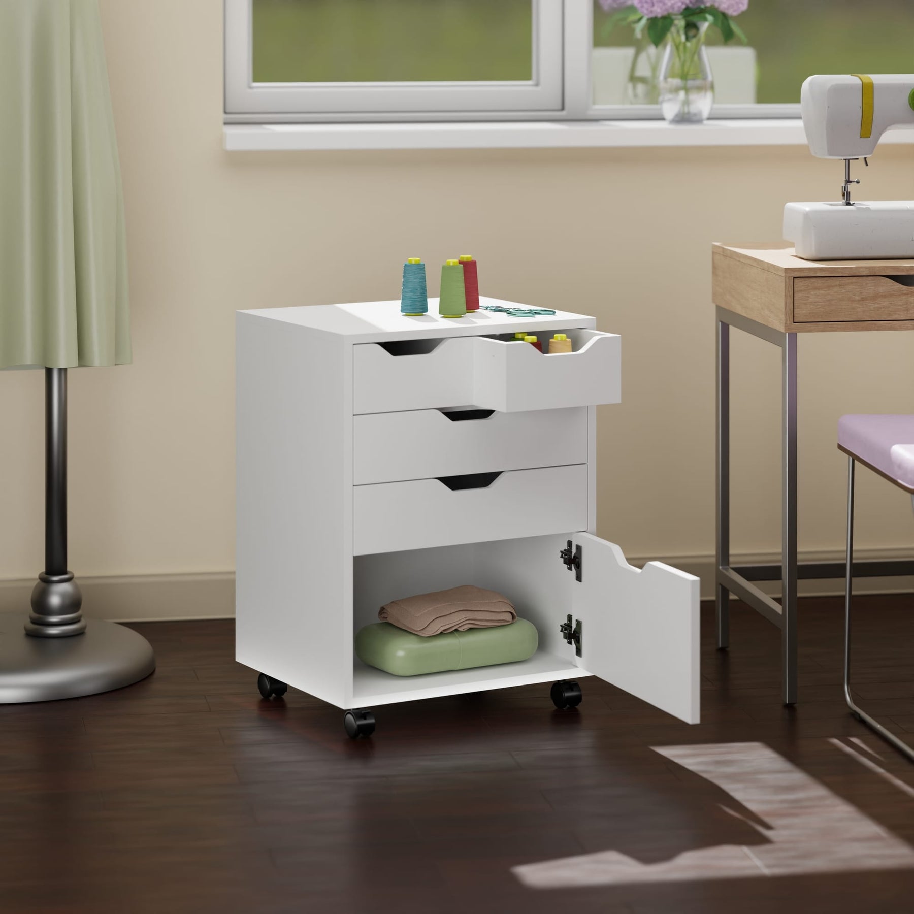 Mobile Storage: Easy to move with four wheels, two of which lock in place.